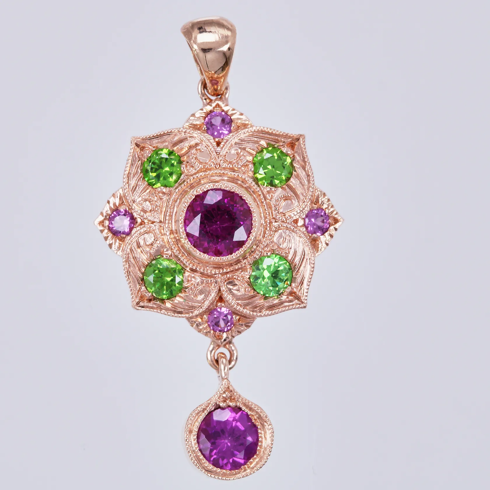 Hänge med granater, längd: ca 3,2cm, bredd: ca 18mm, 14K Vikt: 4,7 g.