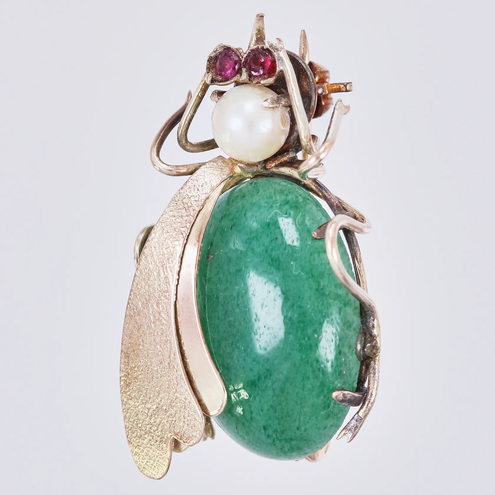 Brosch med stenar och odlad pärla Ø ca 4,5mm, längd: ca 2,8cm, bredd: ca 17mm, saknar ena vingen, 8K Vikt: 4,1 g.