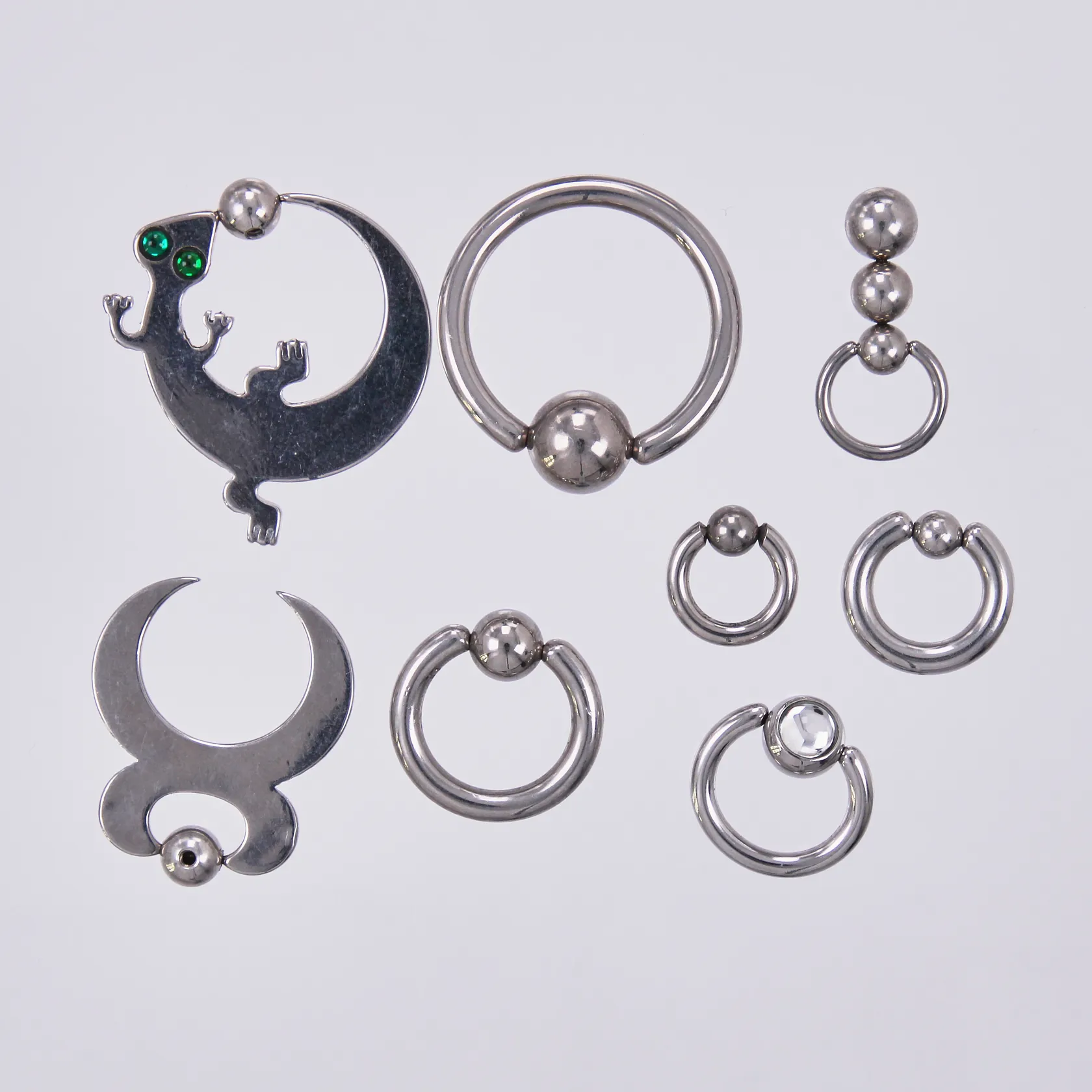 Percingsmycken, 8st i olika utföranden, storlek-/ och tjocklek, metall