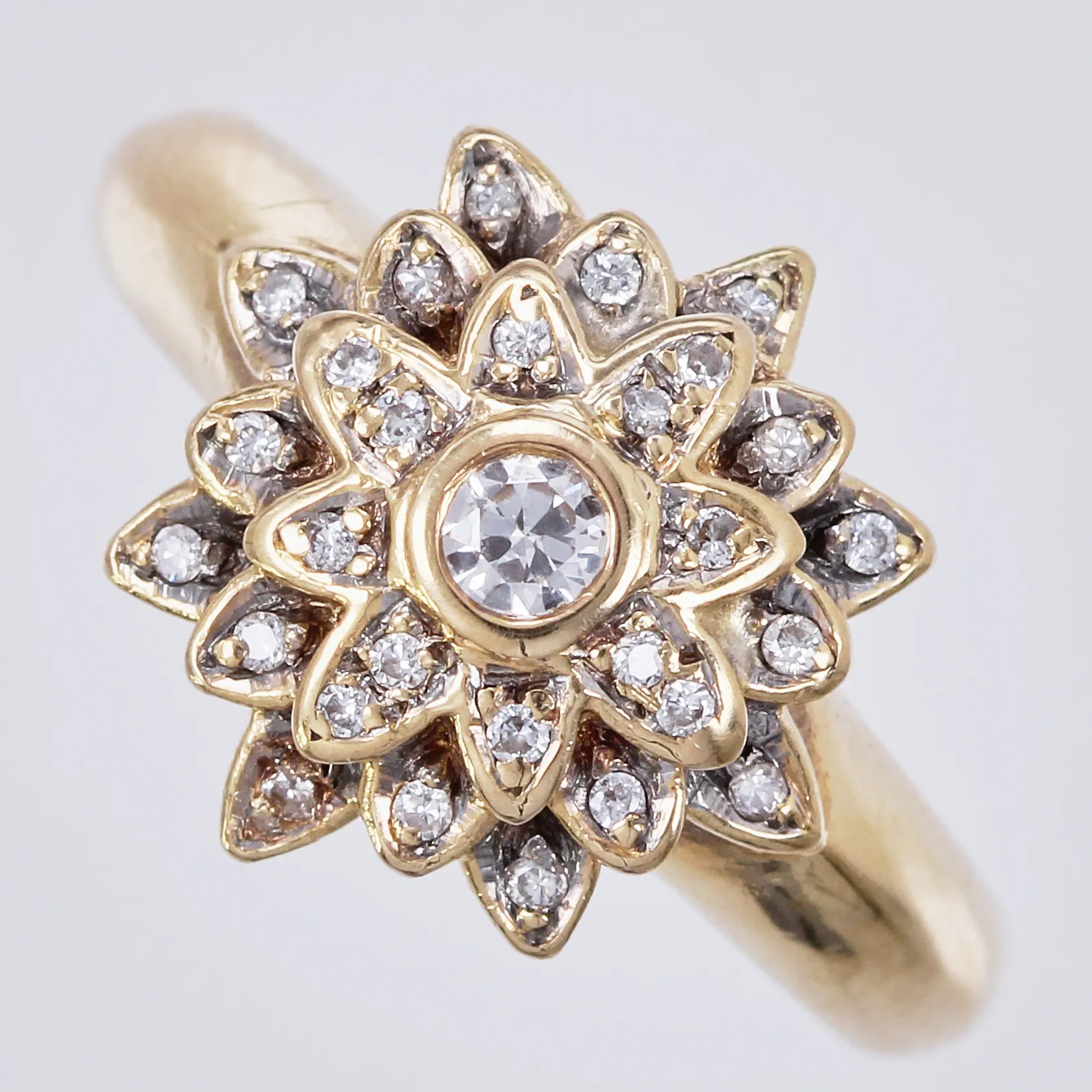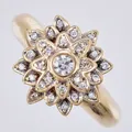 Ring med diamanter totalt ca 0,25ct, stl: 17 ½, bredd ca 3-13mm, 18K Vikt: 4,3 g.