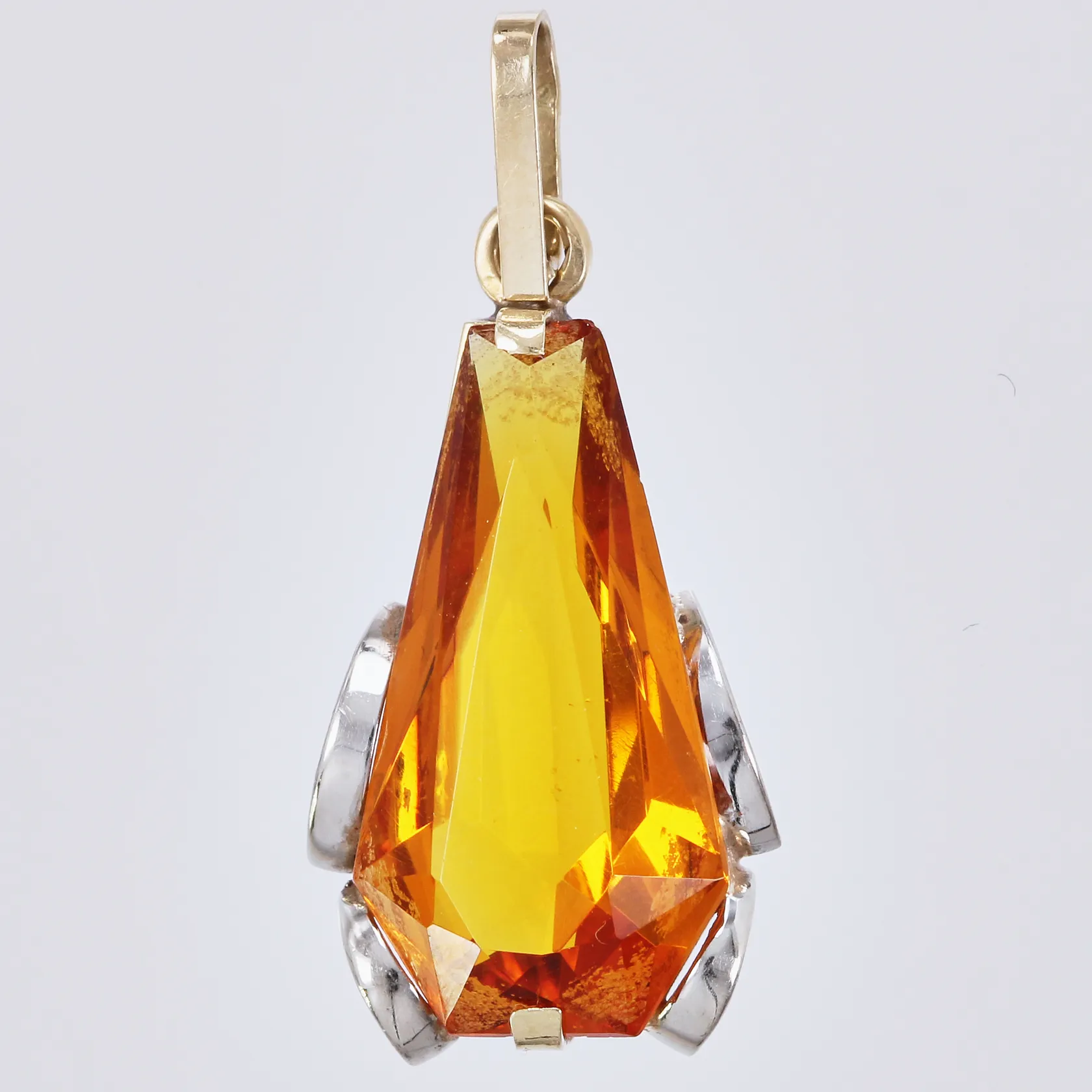 Hänge med sten, längd ca 28mm, bredd ca 1-11mm, 14K, vikt: 2,2gram Vikt: 2,2 g.