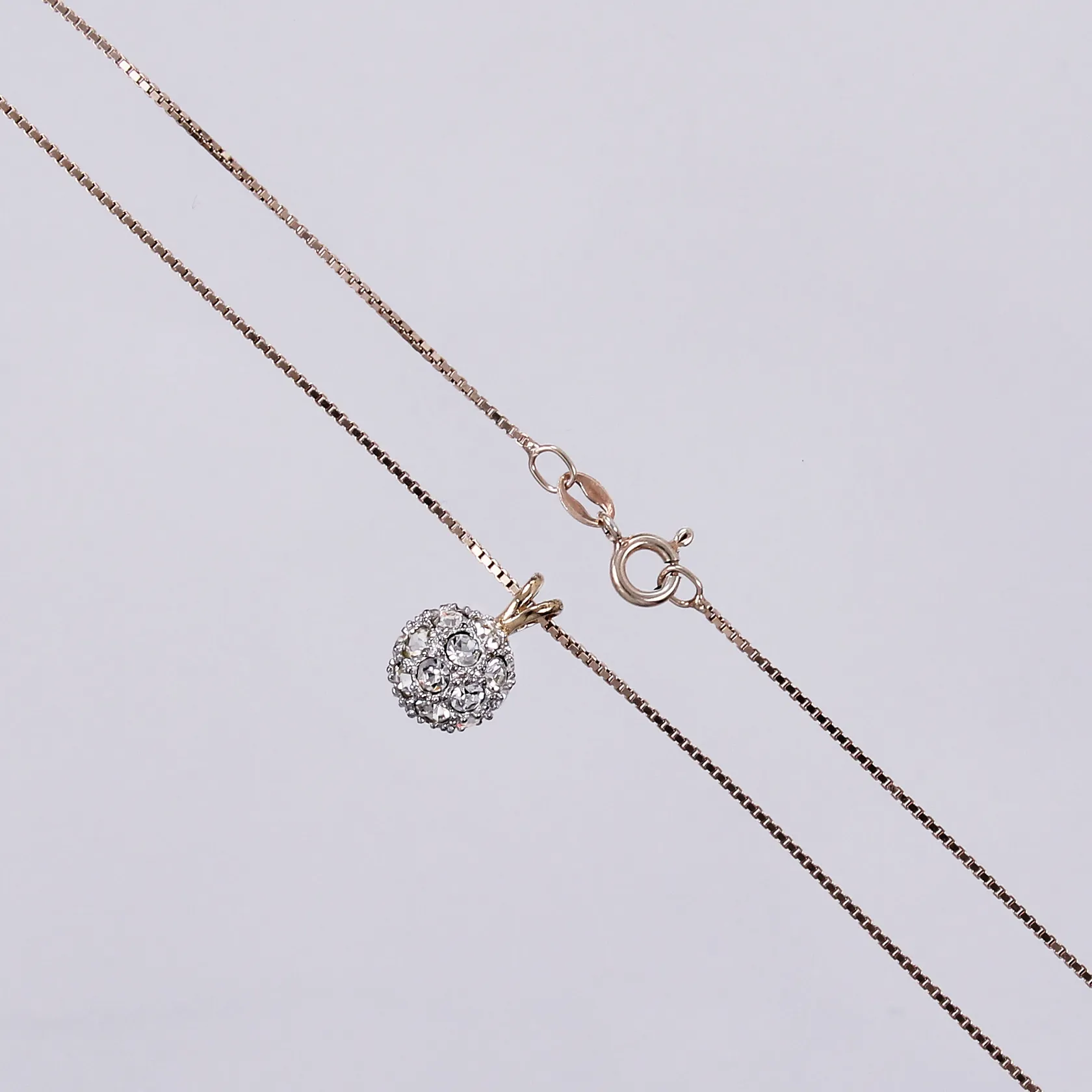 Kedja Venezia, längd a cm, bredd ca 1mm, hänge med vita stenar Ø 10mm, sliten förgyllning, silver Vikt: 6,1 g.
