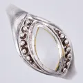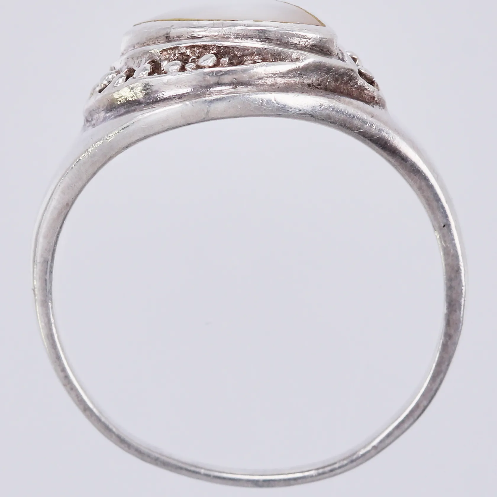 Ring med pärlemo, stl: 18 ¼, bredd ca 1-11mm, silver Vikt: 3 g.