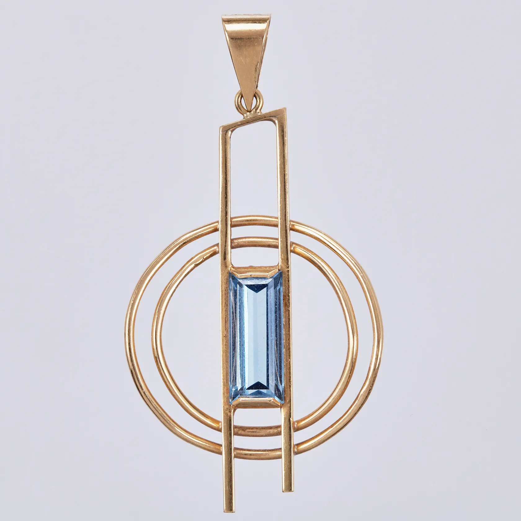 Hänge med blå sten, längd: ca 4,5cm, bredd: ca 6-23mm, BEH Bengt Hallberg Guldsmeds AB år 1966, 18K Vikt: 3,3 g.