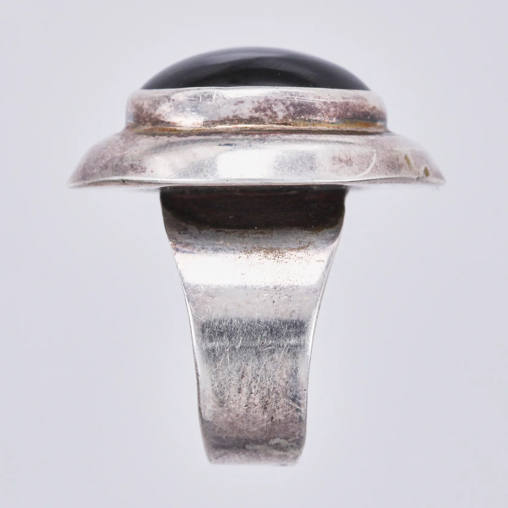 Ring med svart sten, stl: 17¼, bredd: ca 6-25mm, stämplad Mexico, 925/1000 silver Vikt: 9,3 g.