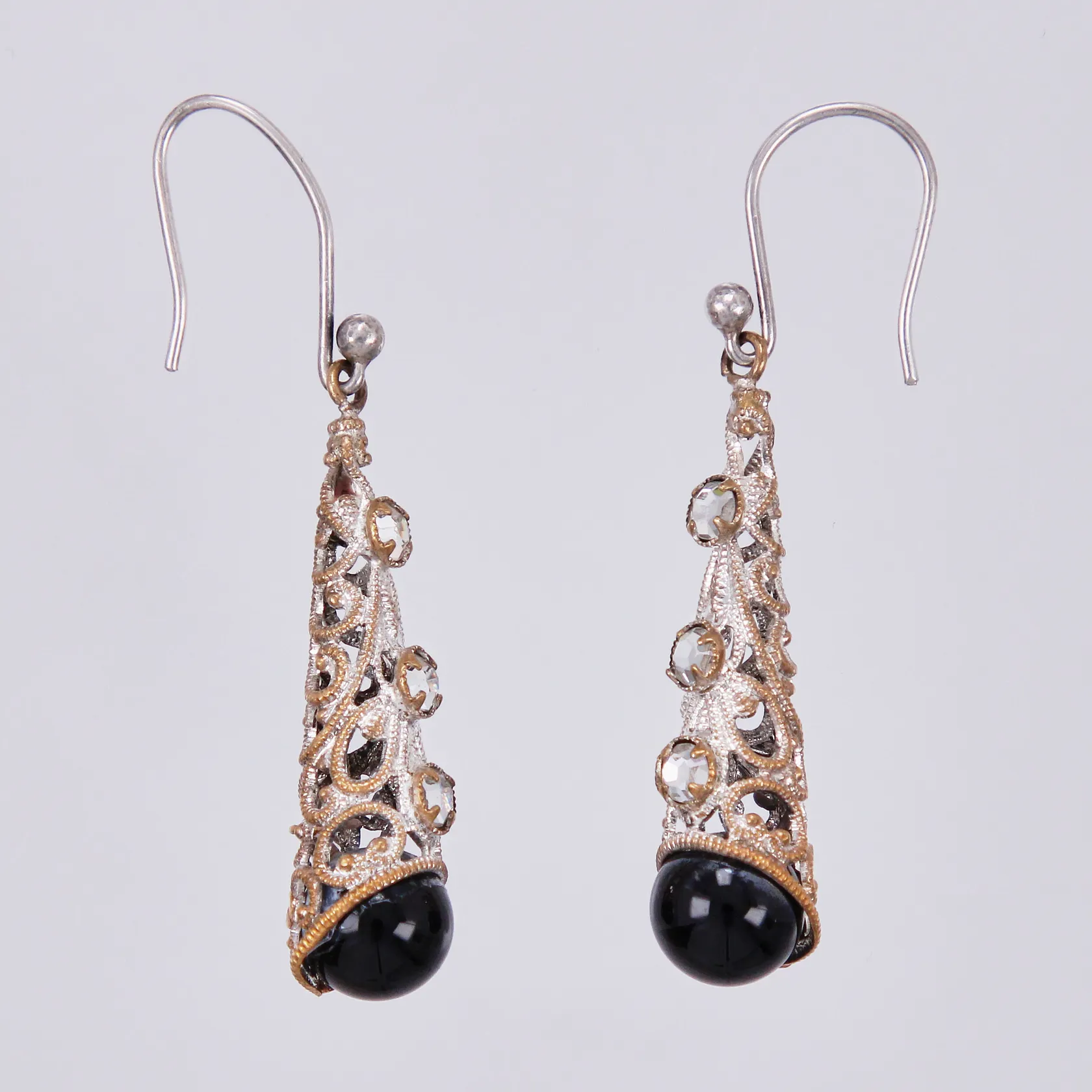 Ett par örhängen med stenar, längd: ca 24,7cm, bredd: ca 2-9mm, krokarna 925/1000 Silver, hängdel med stenar är metall Vikt: 4,4 g.