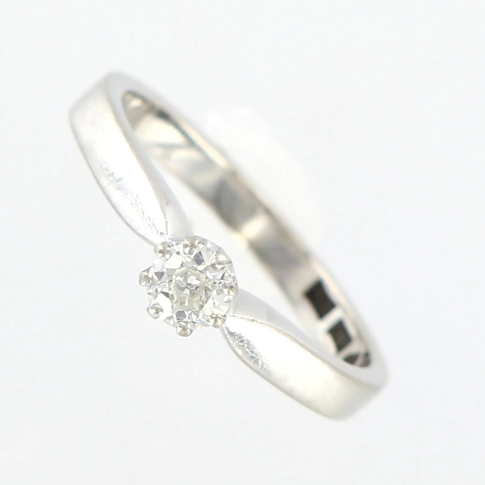 Ring, diamant ca 0,15ct, kapad kulett, stl 16¼, bredd 2-4mm, höjd 6mm, Juvelerare G Arenhill år 1966 vitguld, 18K, Vikt: 3,2 g.