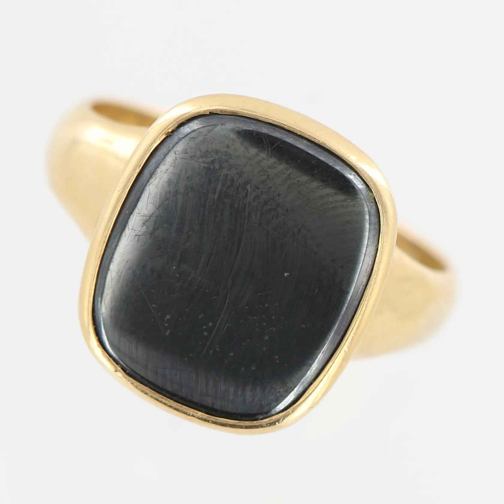 Klackring med hematit, stl 19, bredd ca 15mm, 18K Vikt: 8 g.