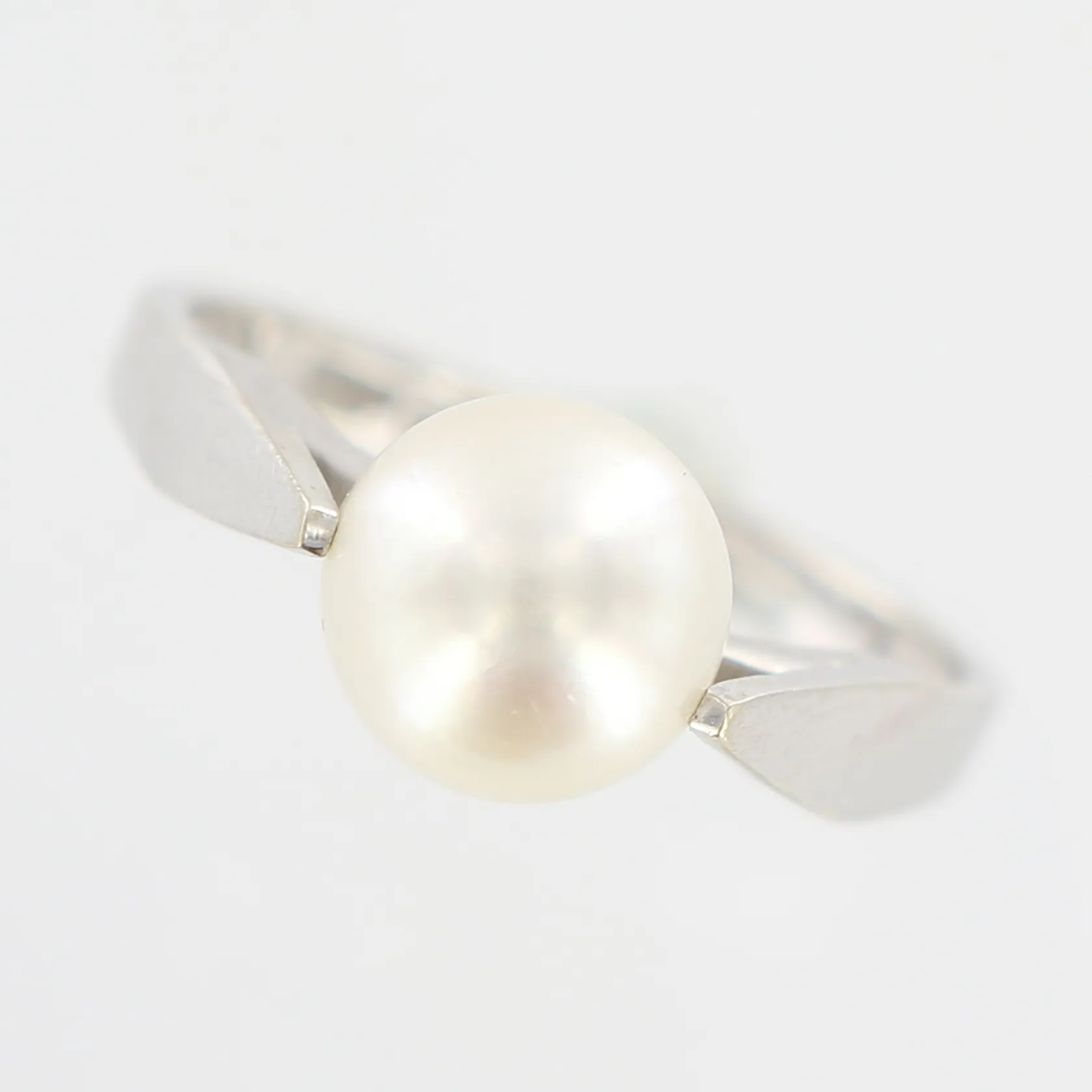 Ring med odlad pärla, Stigbert, stl 16¼, bredd 2-7mm, vitguld, 18K Vikt: 2,7 g.