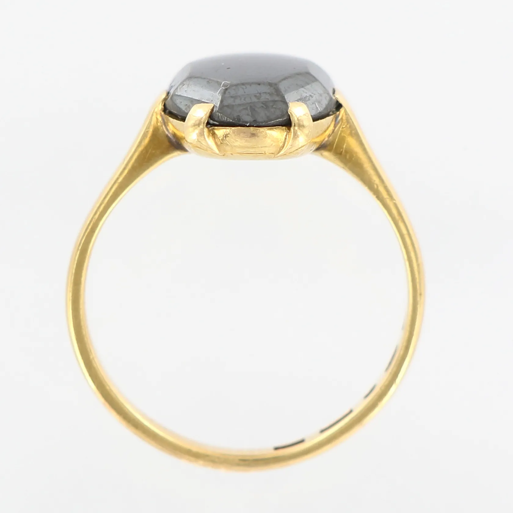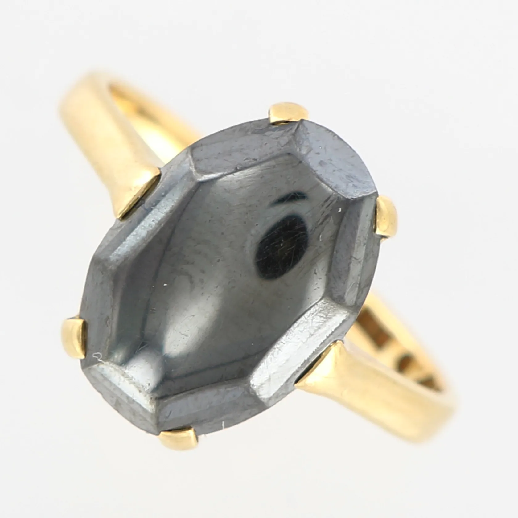 Ring med hematit, slt 17¼, bredd 2-14mm, 18K Vikt: 5,5 g.