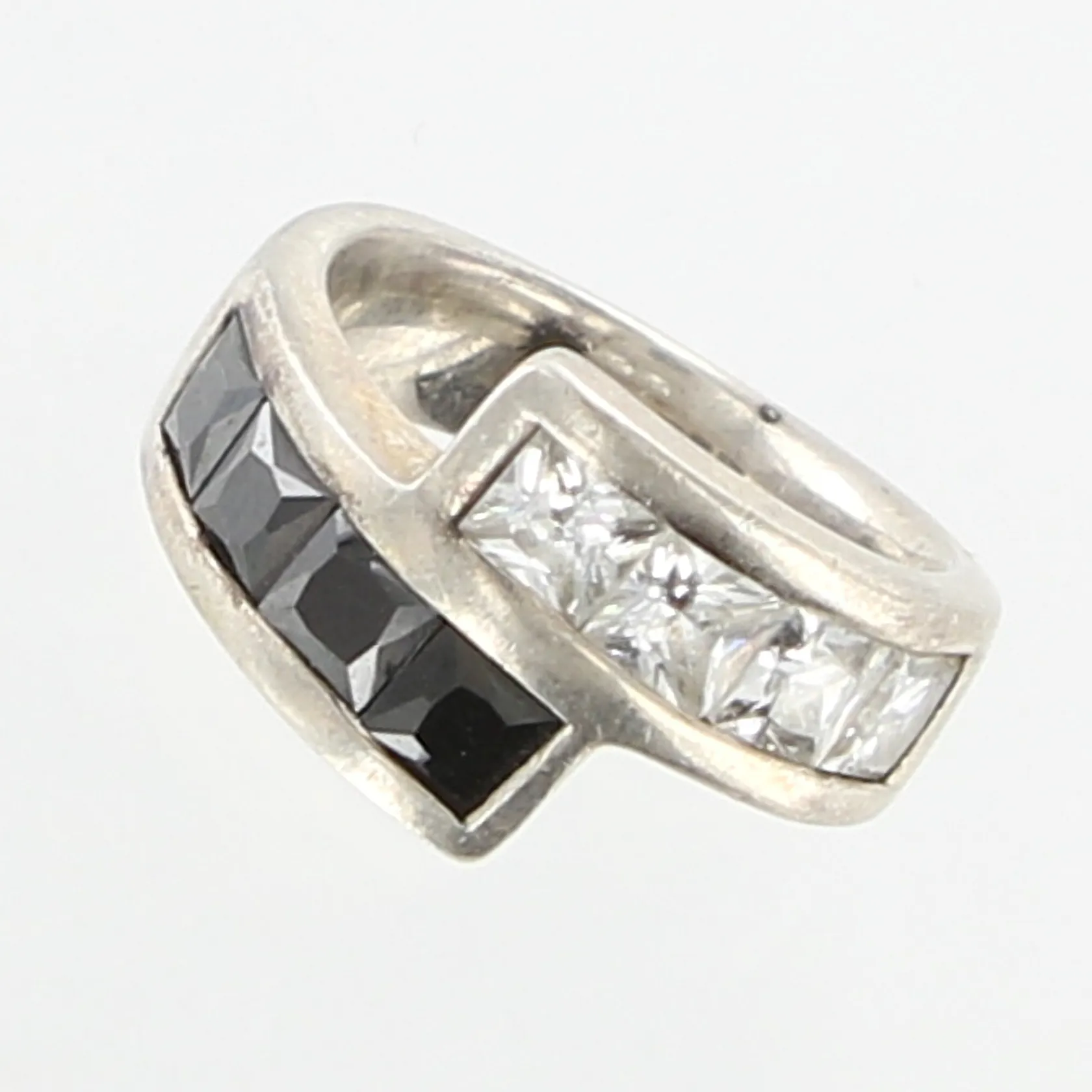 Ring GHA med vita och svarta stenar, stl: 16½, bredd: 5-13mm, silver 925/1000 Vikt: 8,3 g.