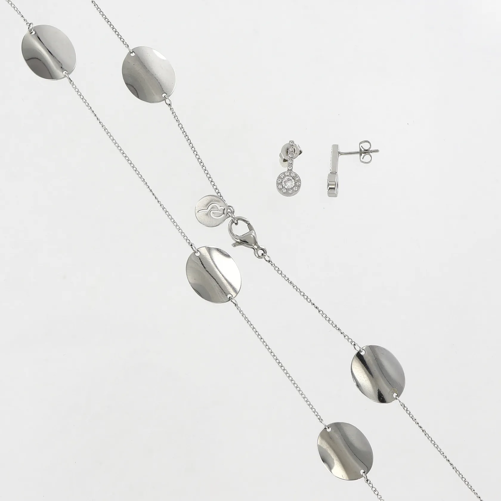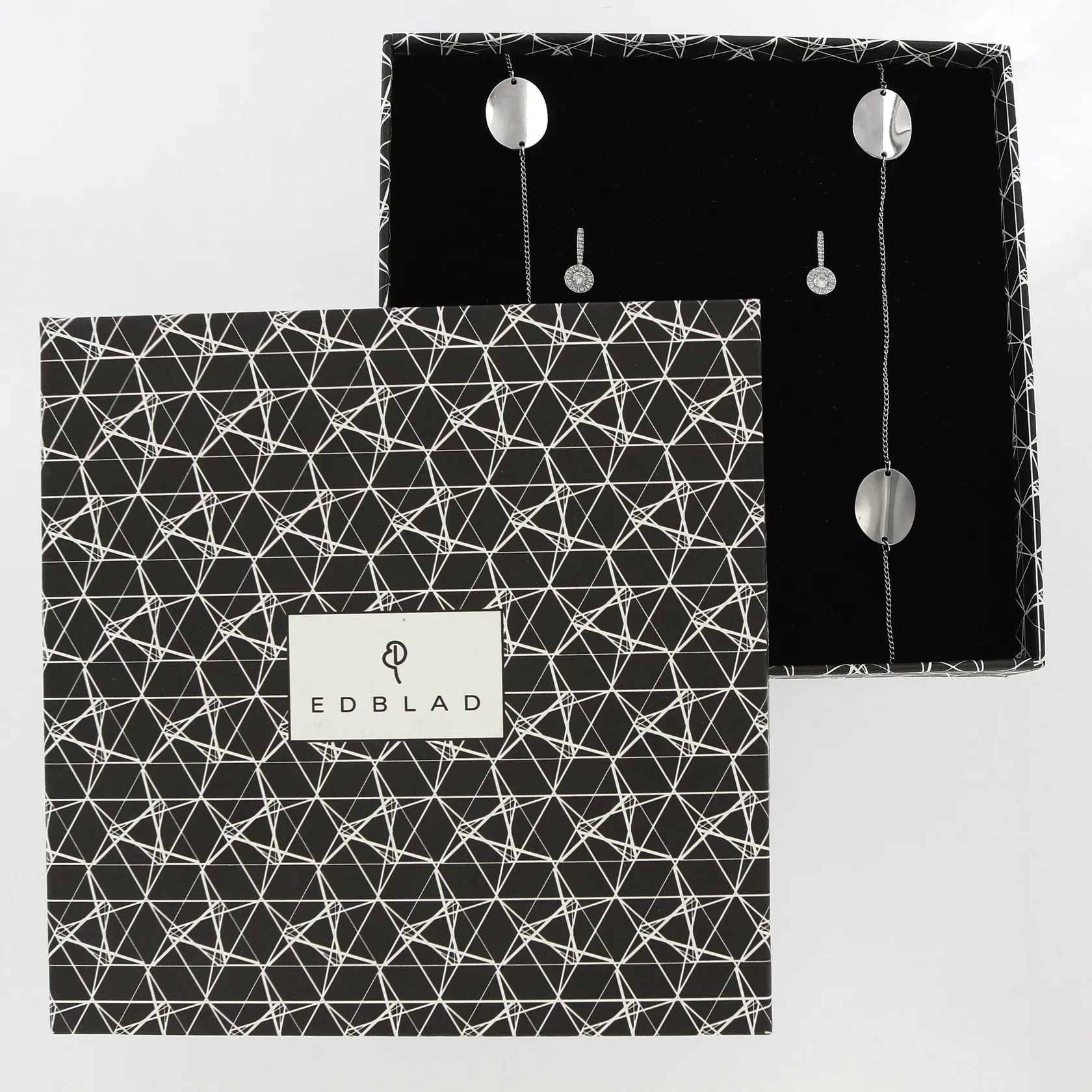 Collier 99cm, Ett par örhänge med vita stenar, 15mm, Edblad, stål, etui