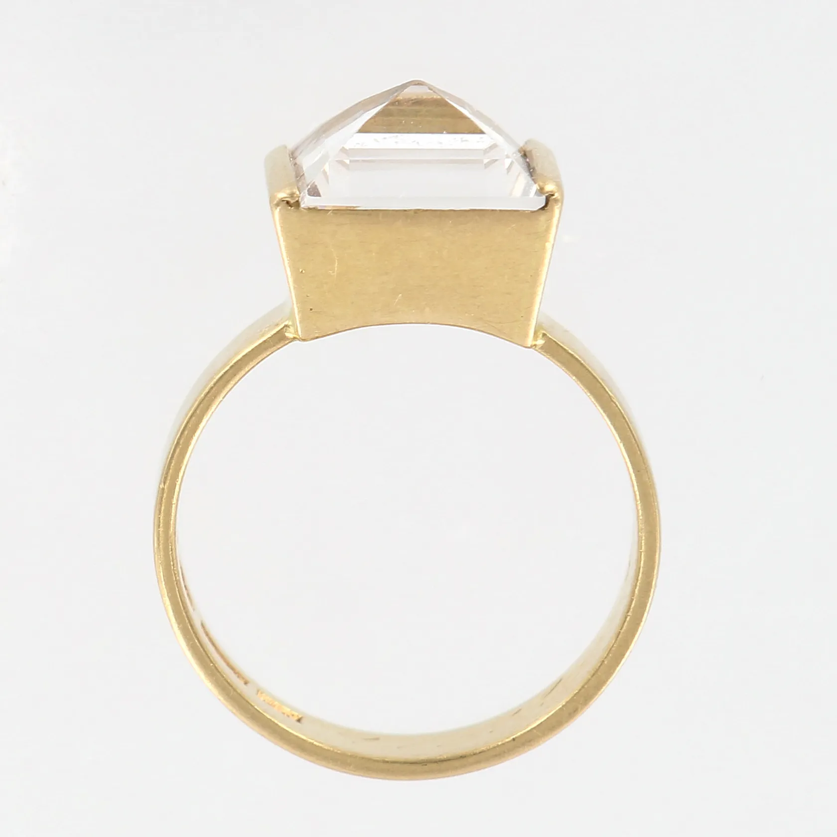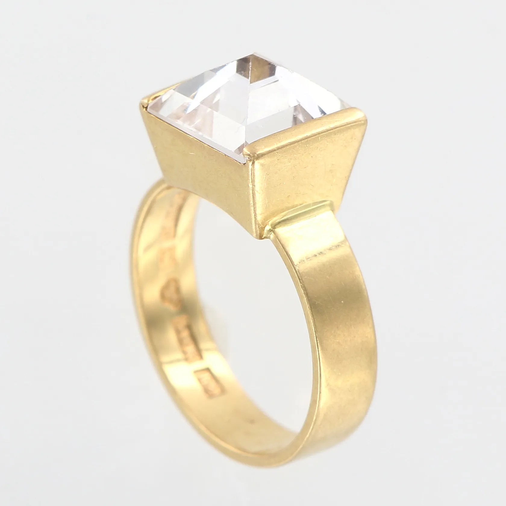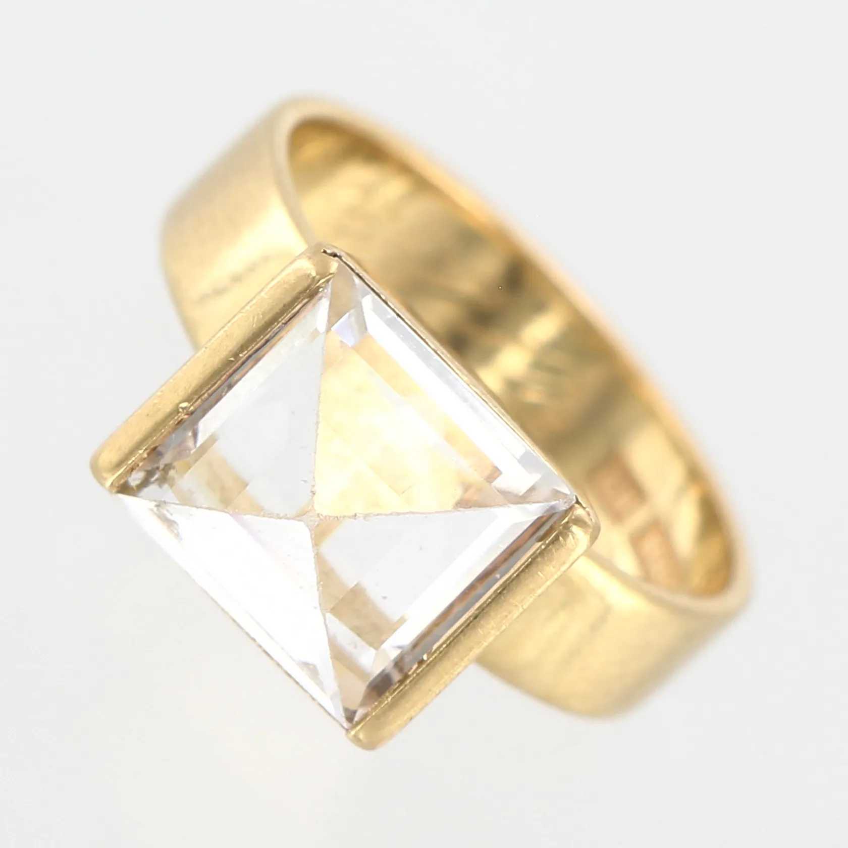 Ring med vit sten, 18¼, bredd 10mm, Guldvaruaktiebolaget G. Dahlgren & Co, Malmö 1961, gravyr, 18K Vikt: 8,3 g.