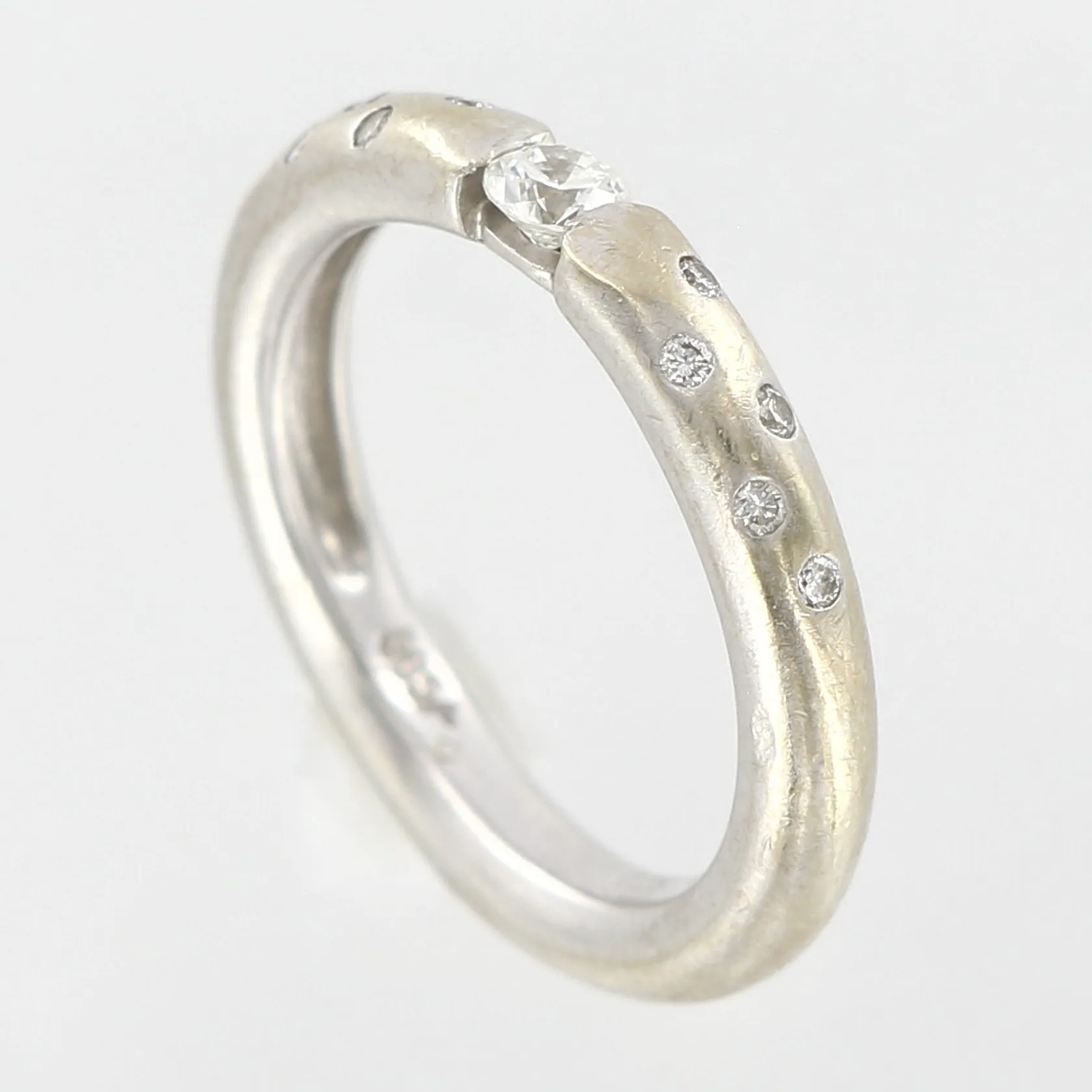 Ring med diamanter 11st 0,28ctv, stl 17¼, bredd 3mm, diamantcertifikat från Ur & Optik AS Oslo medföljer, vitguld, i behov av rodiering, 14K Vikt: 5,8 g.