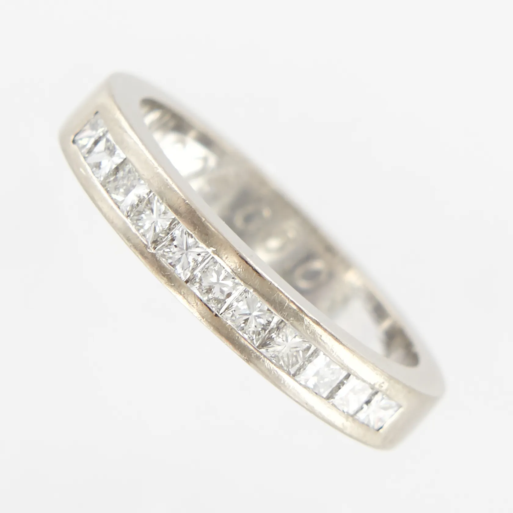 Ring med diamanter 11st ca 0,33ctv, stl 17¼, bredd 3,5mm, vitguld, i behov av rodiering, gravyr, 18K Vikt: 5,5 g.