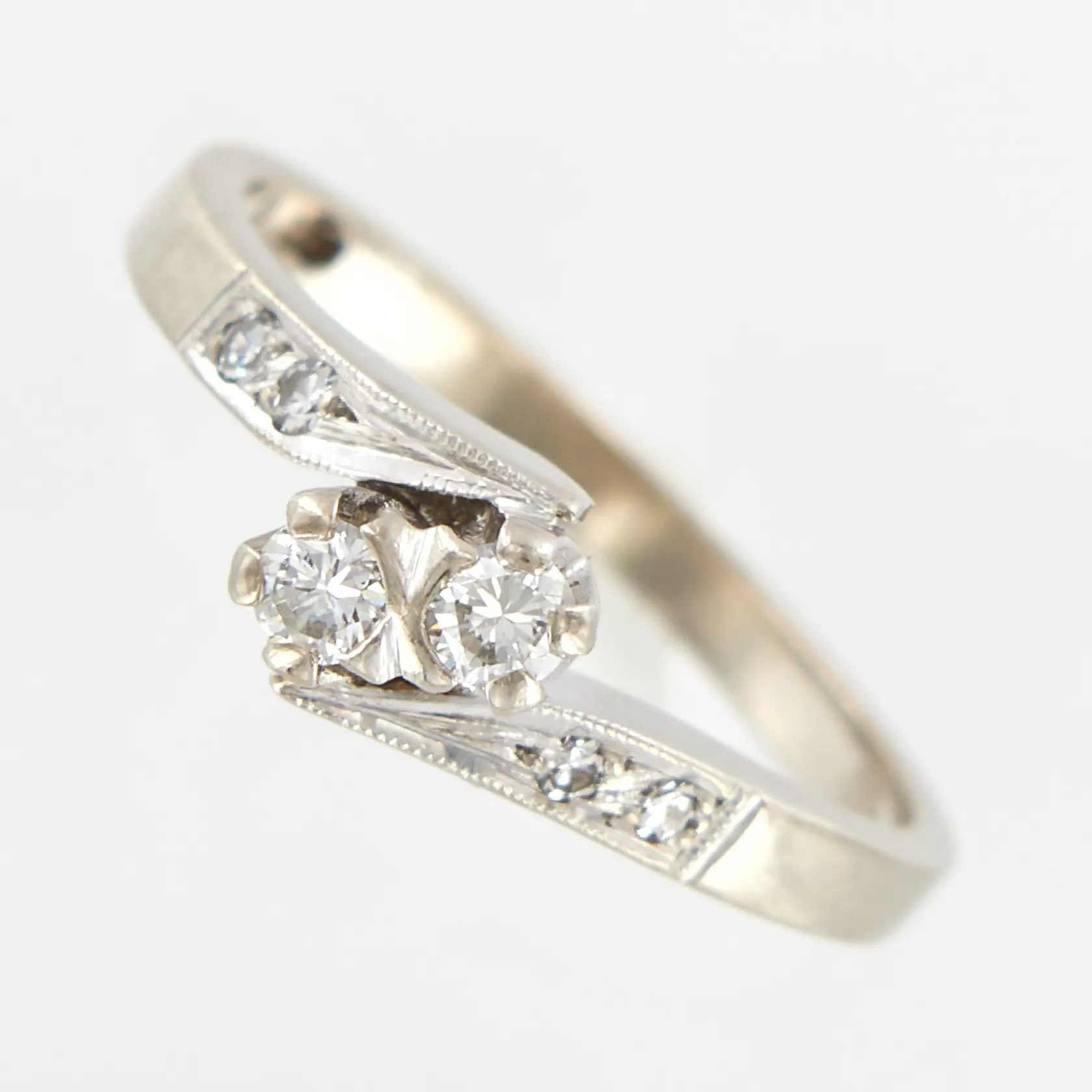 Ring vitguld med diamanter 0,18ct enligt gravyr, stl 16½, bredd ca 2-5mm, behov av omrodinering, 18K Vikt: 3,4 g.