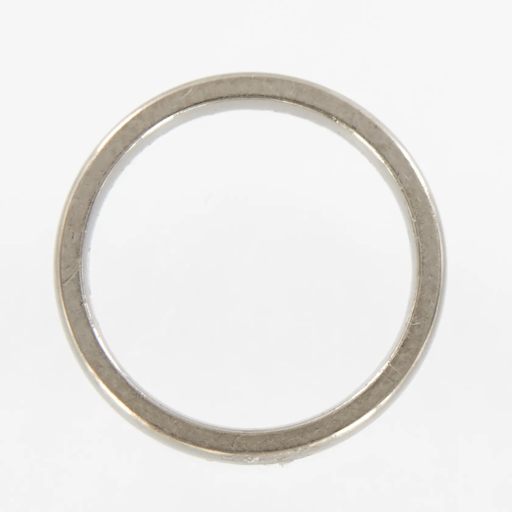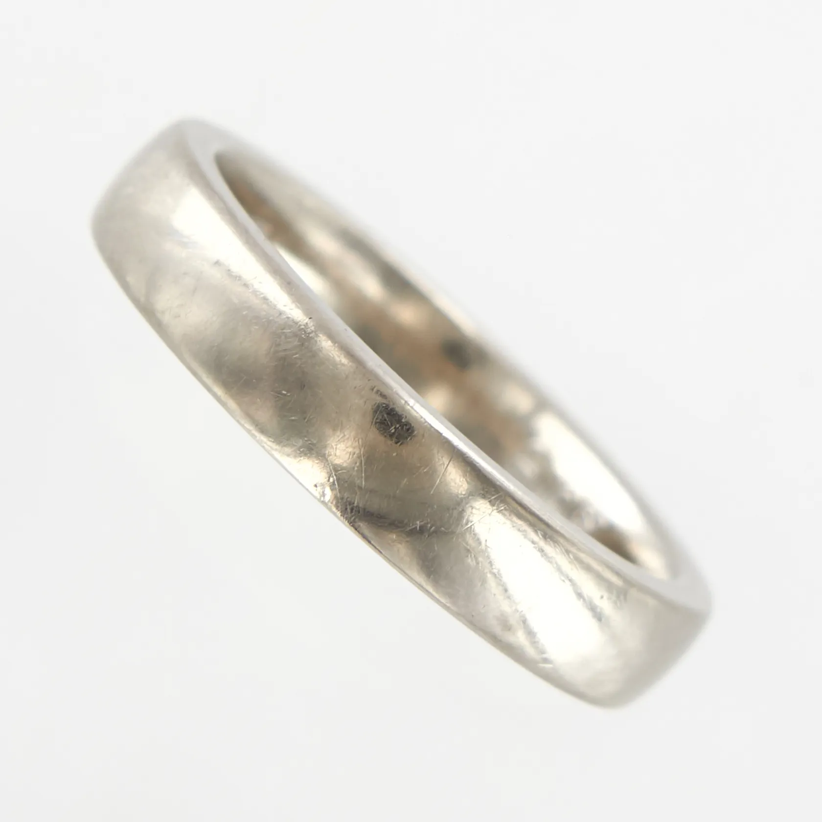 Ring vitguld slät, stl: 17¼, bredd: 4mm, gravyr, repig skena, 18K Vikt: 6,8 g.