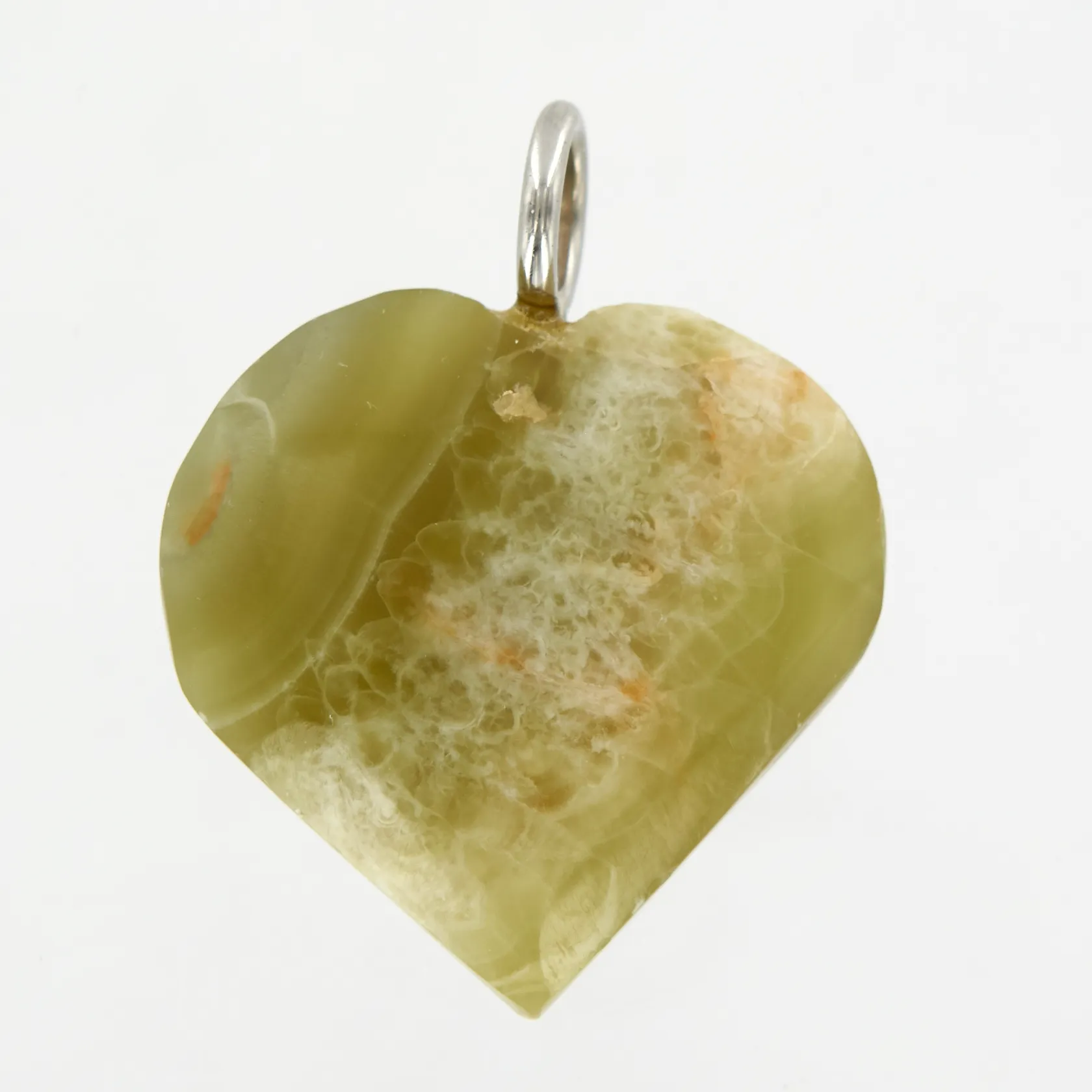 Hänge med hjärtformad grön sten, 34mm, ögla i metall,