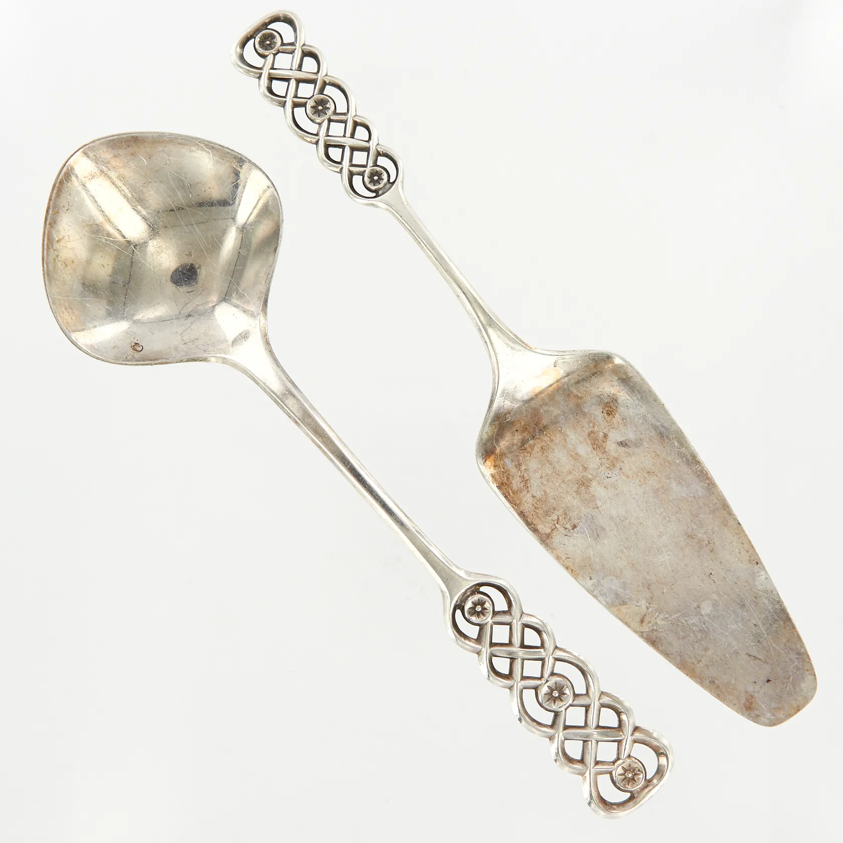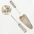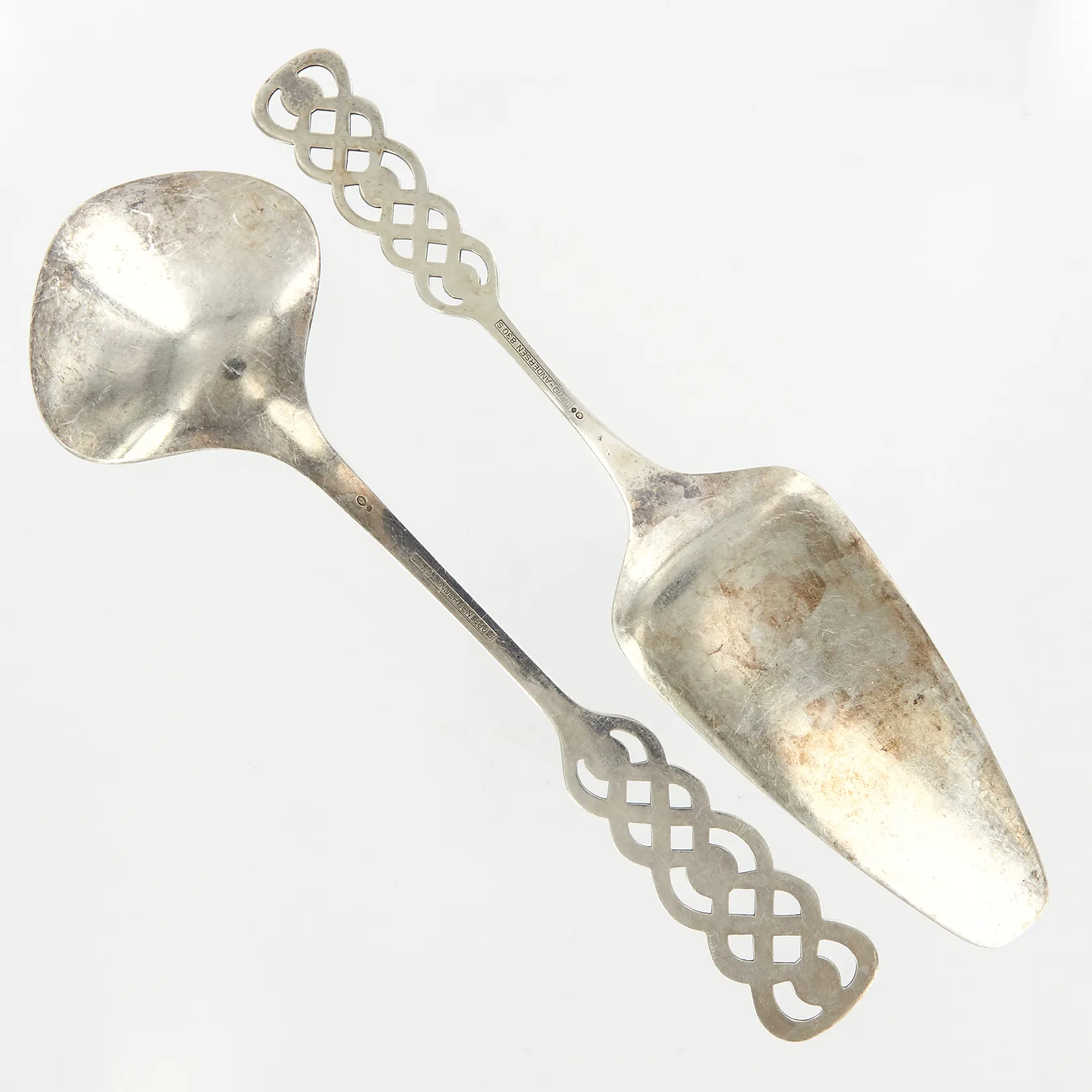 En tårtspade 21cm, en sked 20,5cm, David Andersen, silver 830/1000 Vikt: 120,6 g.