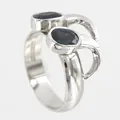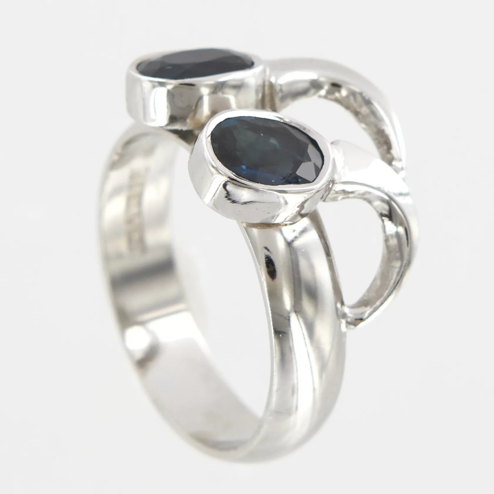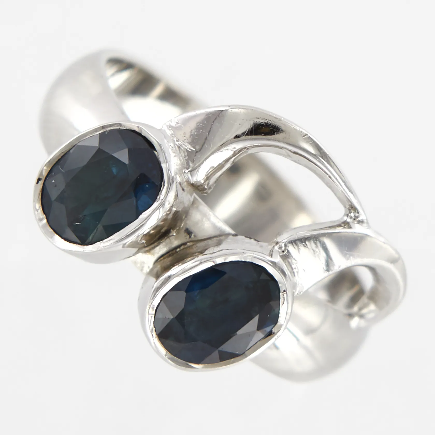 Ring vit med blå stenar, stl 17¾, bredd framtill 12mm, 18K Vikt: 6,8 g.
