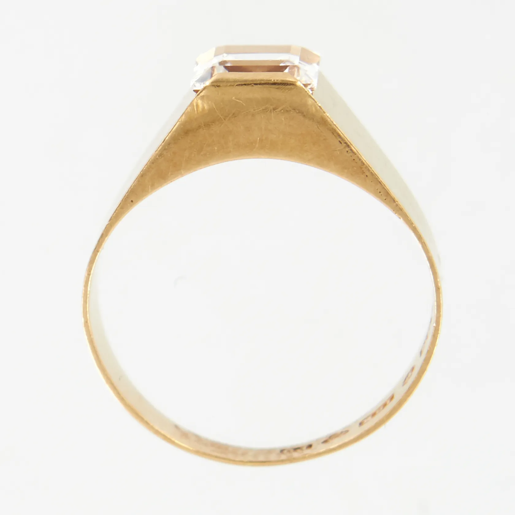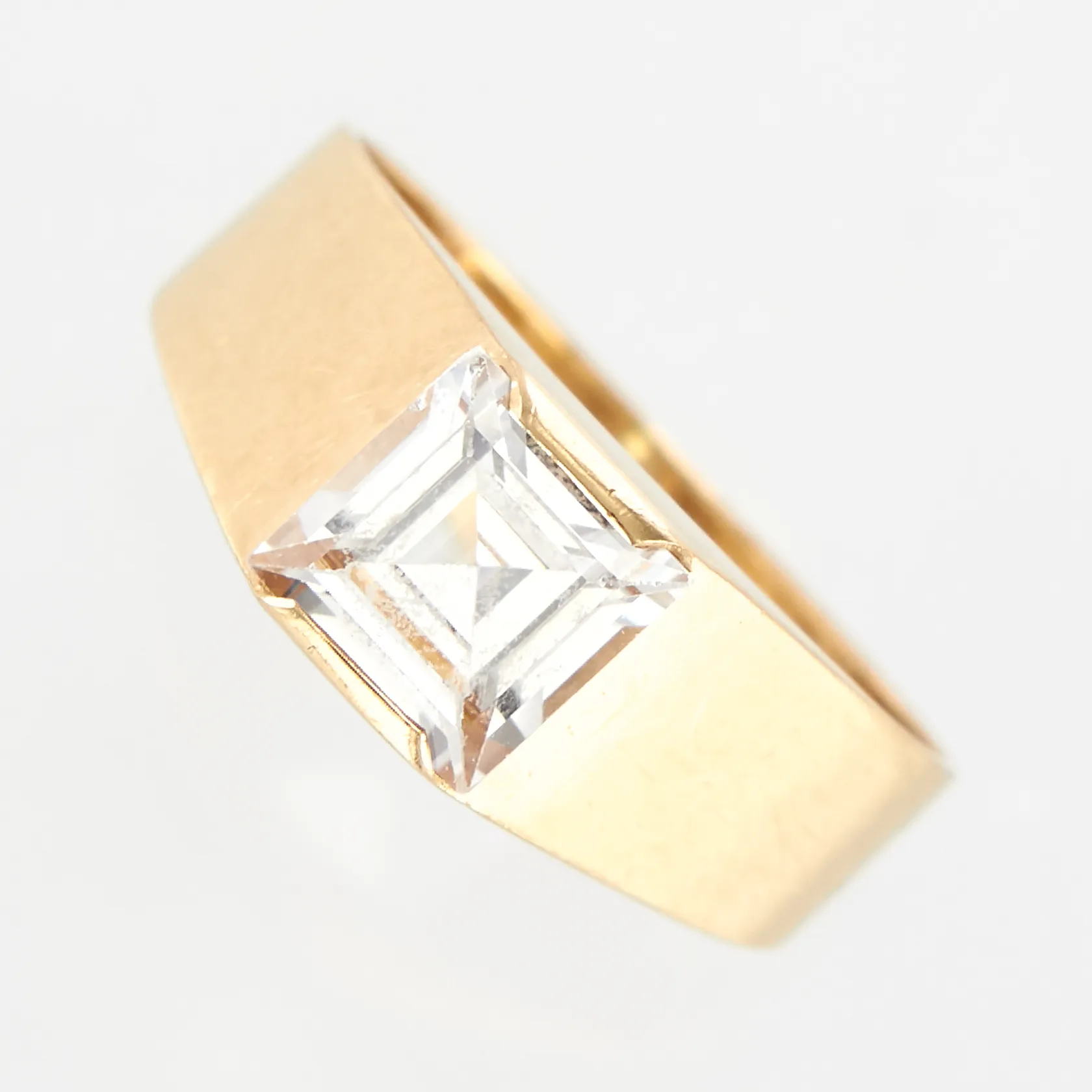 Ring med vit sten, stl 15¾, bredd ca 6mm, 18K Vikt: 2,4 g.