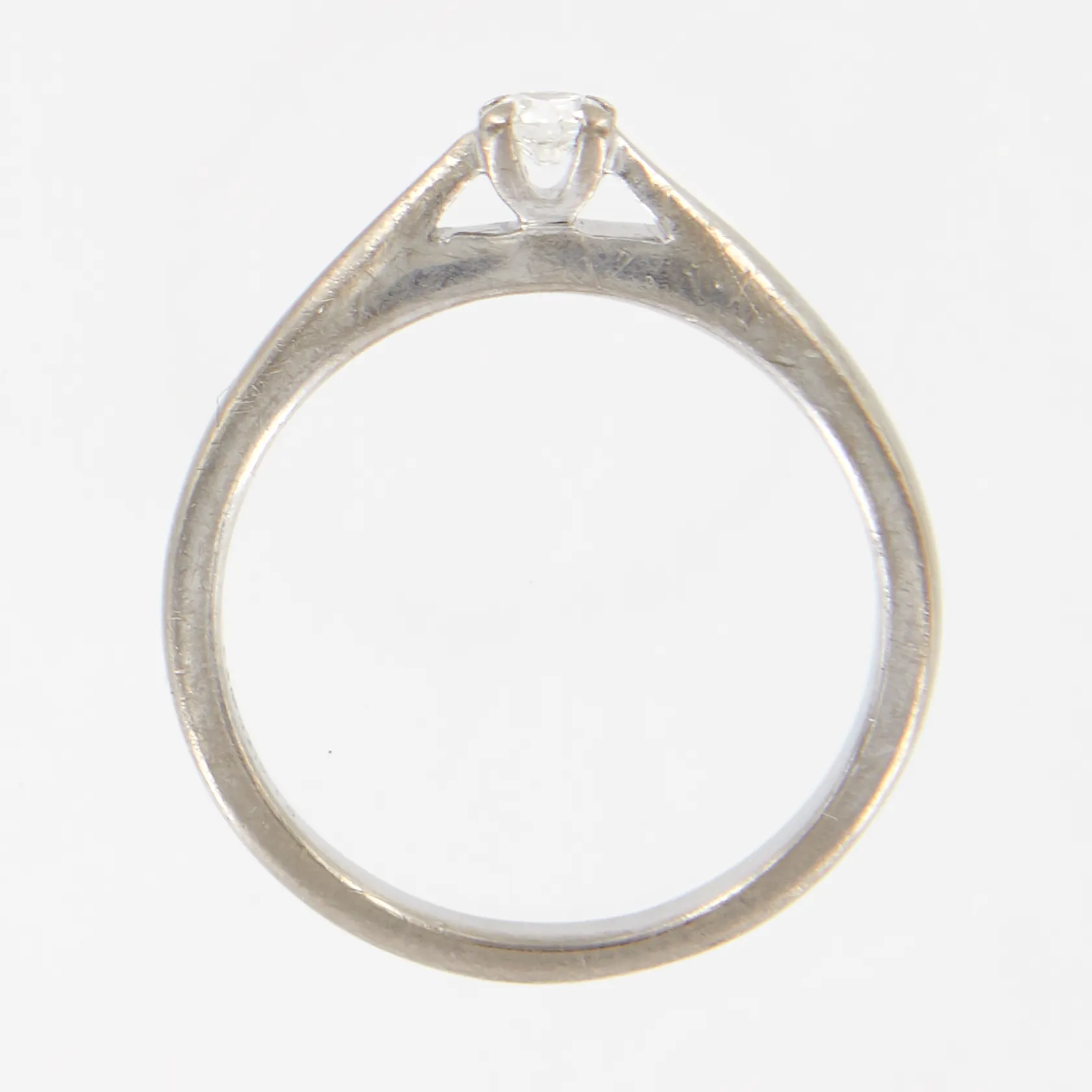Ring med diamant 0,10ct, stl 15¼, bredd 3mm, GHA, vitguld, i behov av rodiering, 18K Vikt: 3,2 g.