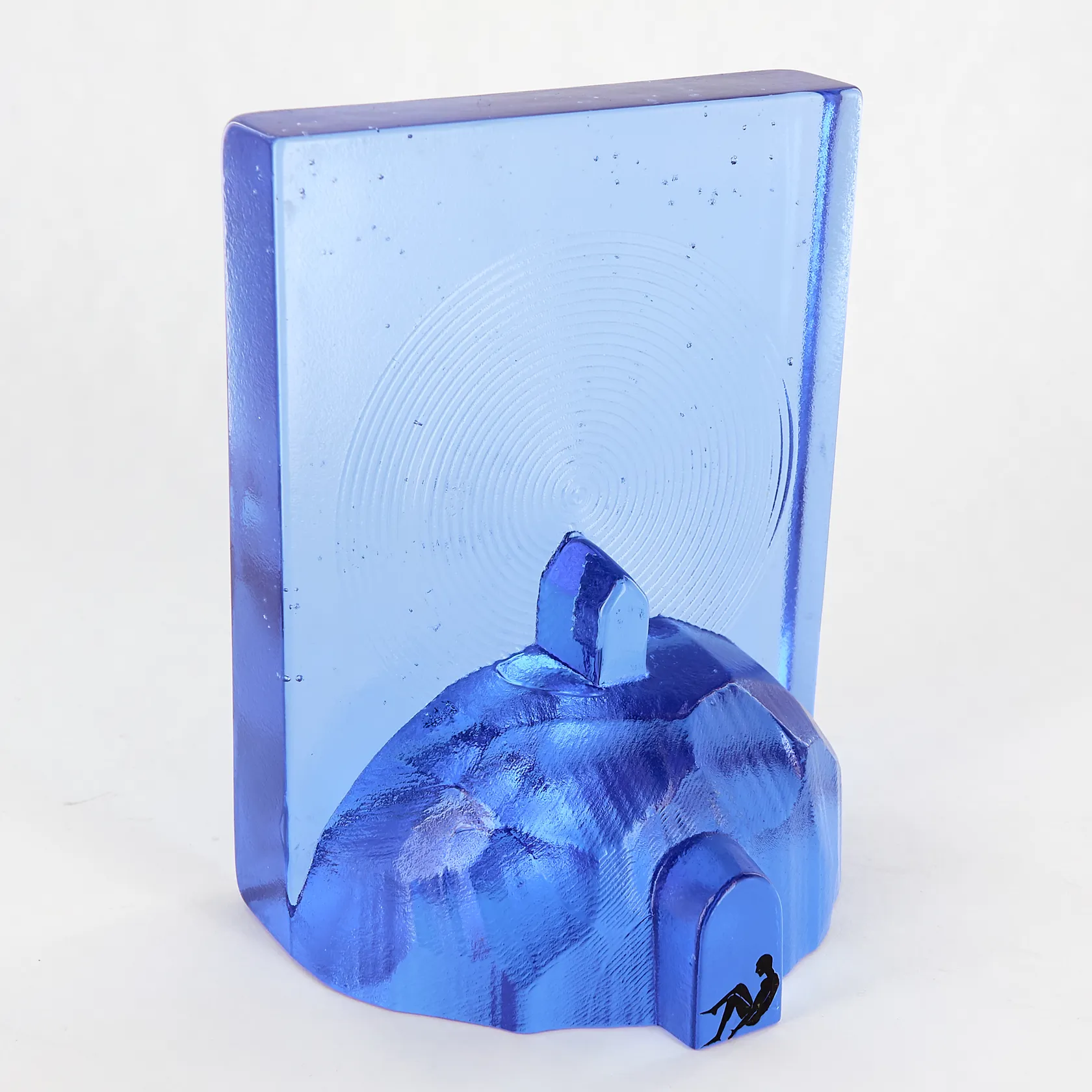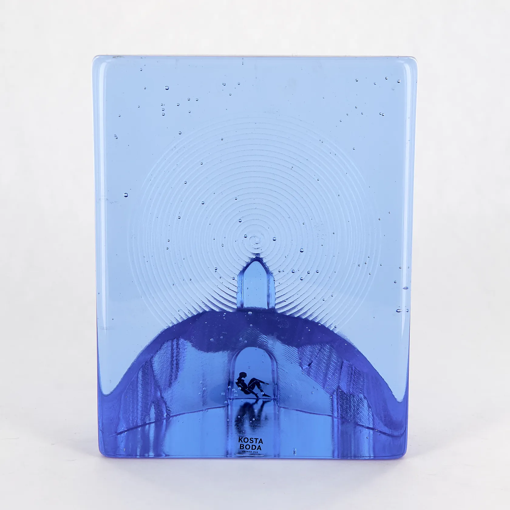 Konstglas, skulptur /bokstöd, "Blues Hideout", formgiven av Bertil Vallien för Kosta boda, 15 x 11,5 x 8,5cm, nr: 7091009, signerad samt etikettmärkt Skickas med postpaket.