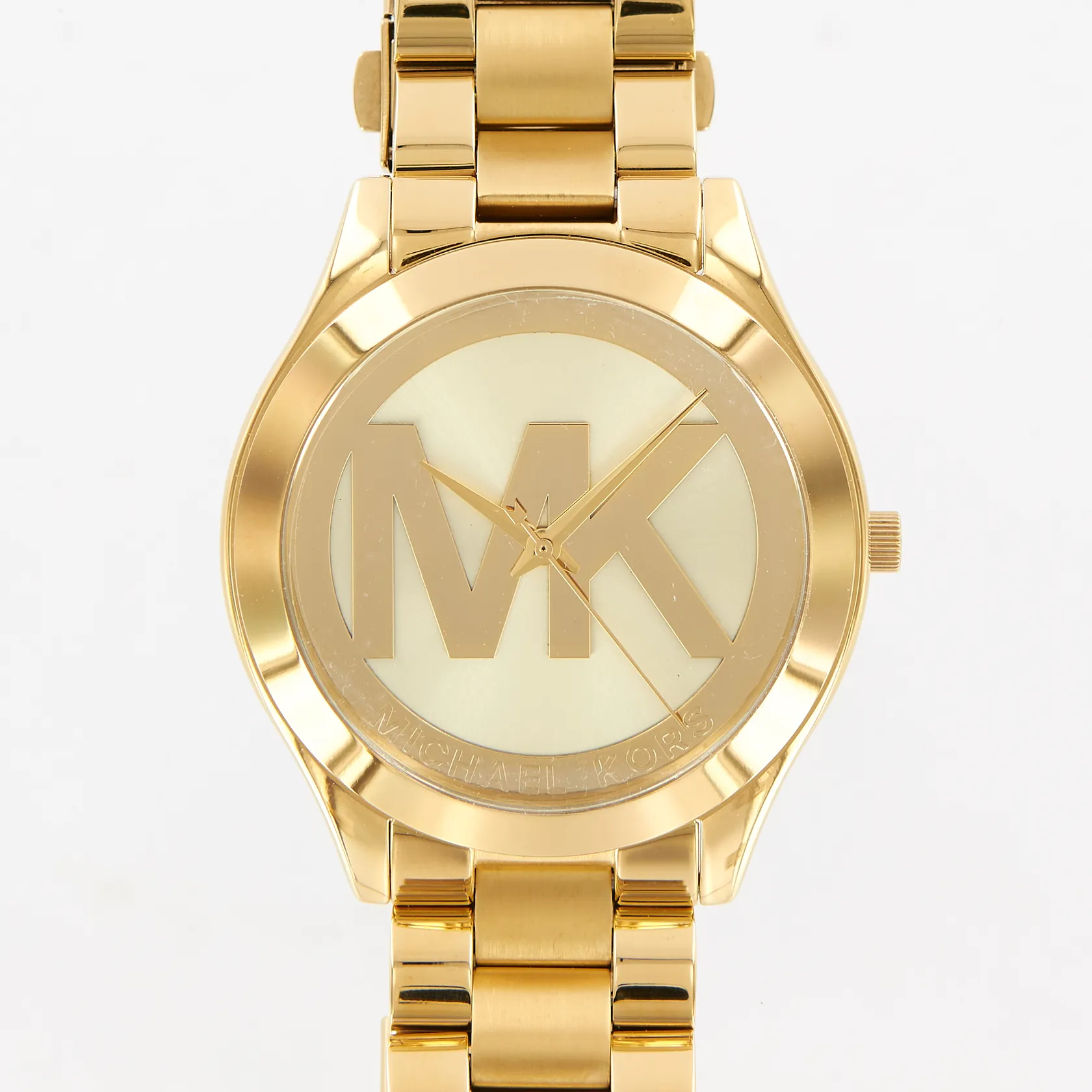 Damur Michael Kors, Ø41mm, quartz, ref: MK-3739, serienr: 251907, guldfärgat stål, fint skick, box, behov av batteribyte