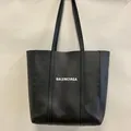 Väska, Balenciaga Everyday Tote Bag XS, svart läder med Balenciaga logo i vitt tryck, avtagbar axelrem, spår av användning dock inga skador, ca 12 x 26 x 27cm, kvitto NK Göteborg år 2021, dustbag, Nypris 1,300 $