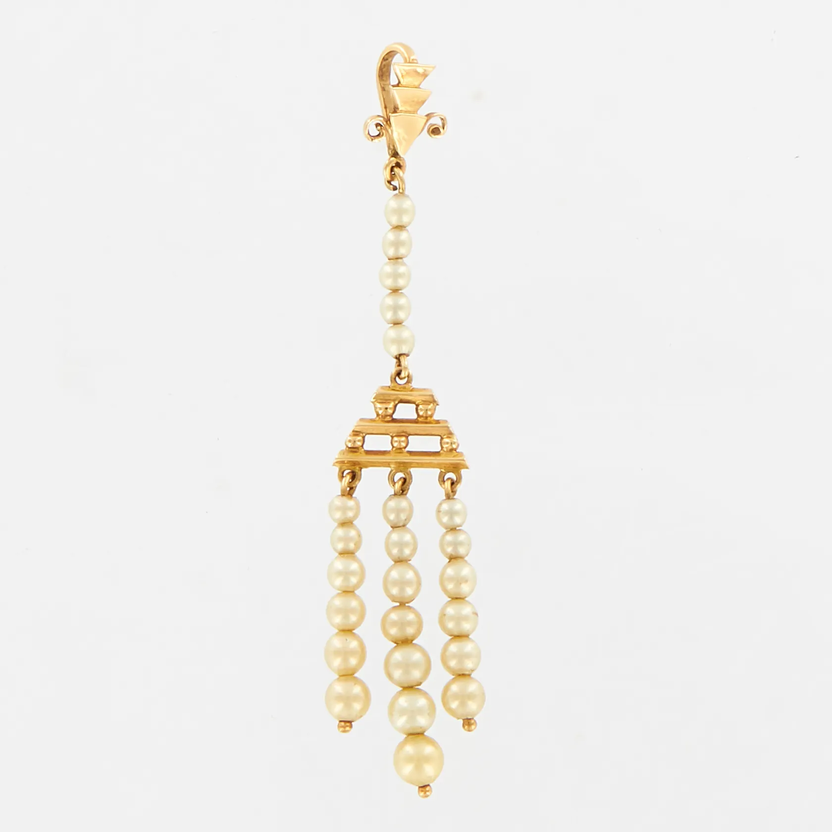 Hänge med pärlor, ca 52mm, Heribert Engelbert, 1927, gulnade pärlor, 18K Vikt: 1,7 g.