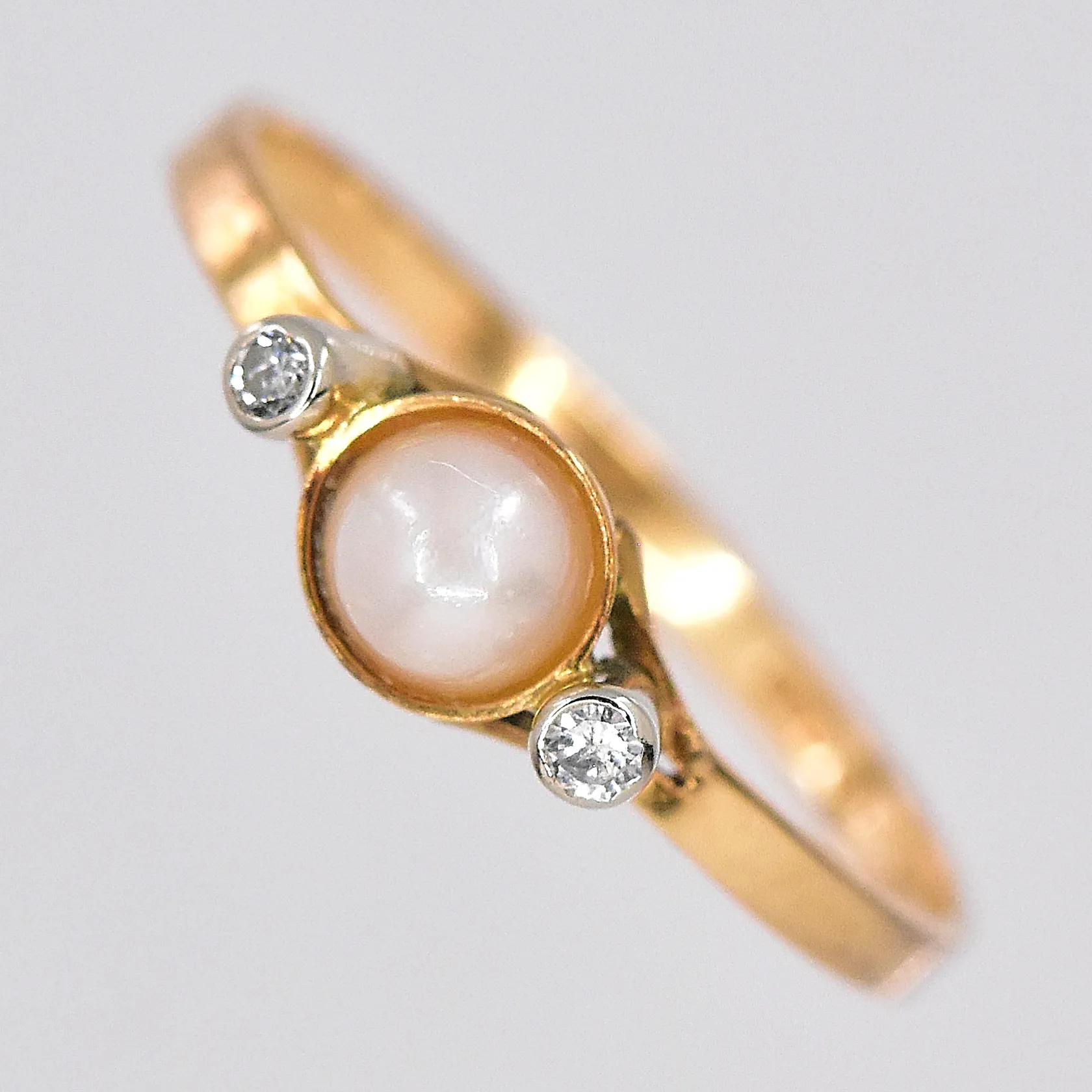 Ring, stl 16, vita stenar, 18K Vikt: 1 g.