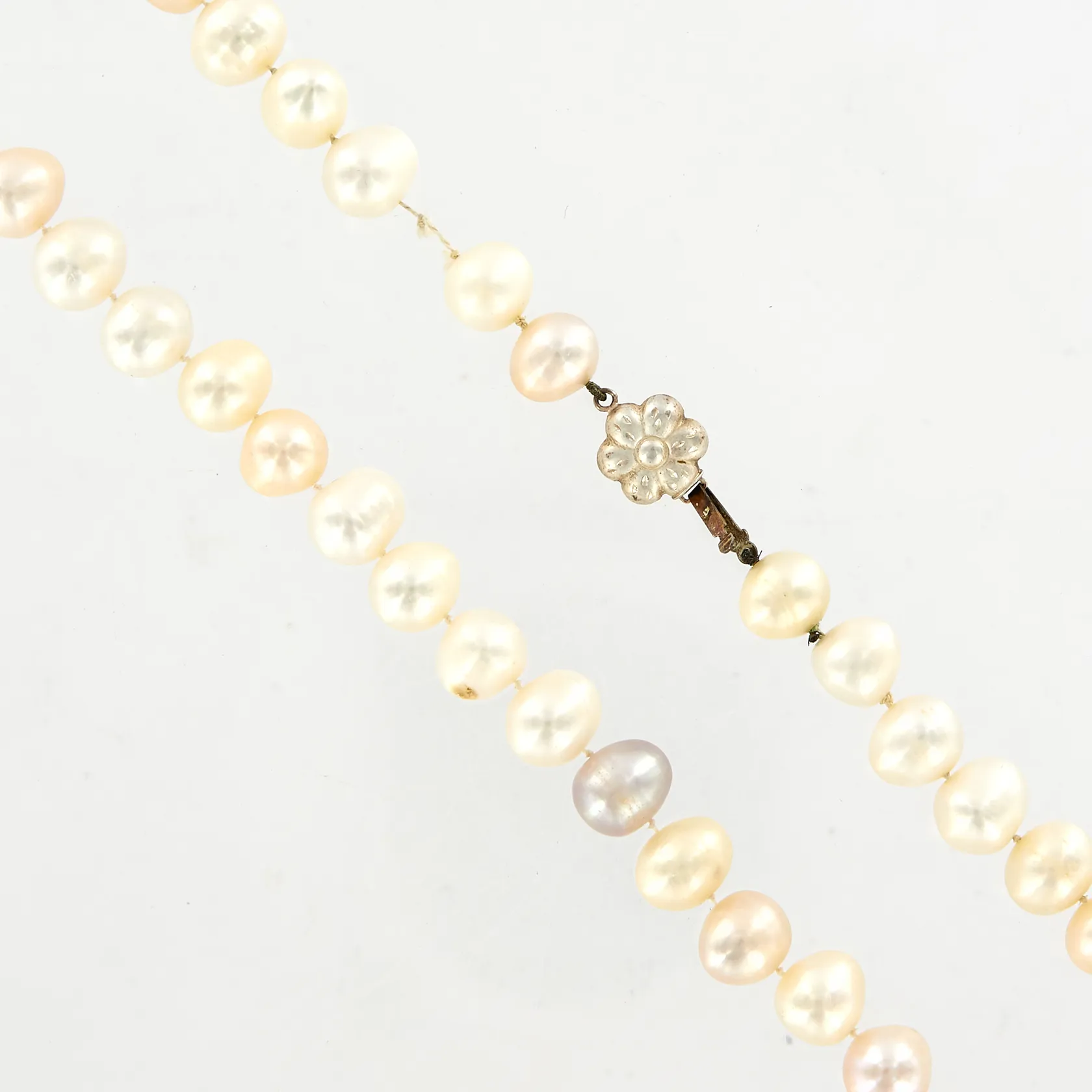 Pärlcollier med odlade sötvattenspärlor, ca 45cm, pärlor Ø11mm, lås i 925/1000 Silver, behov av omträdning, Bruttovikt: 58,2 g