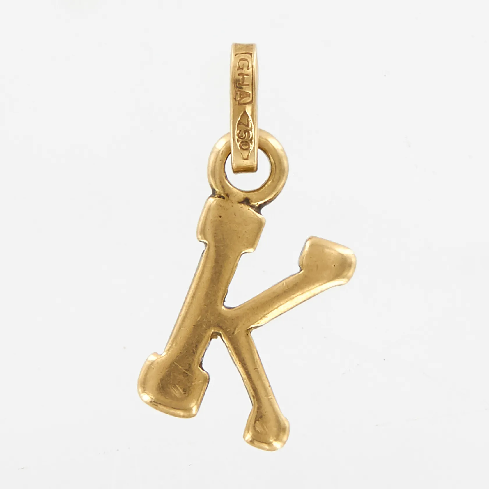 Hänge, bokstaven K, 10x18mm, GHA, 18K Vikt: 0,8 g.