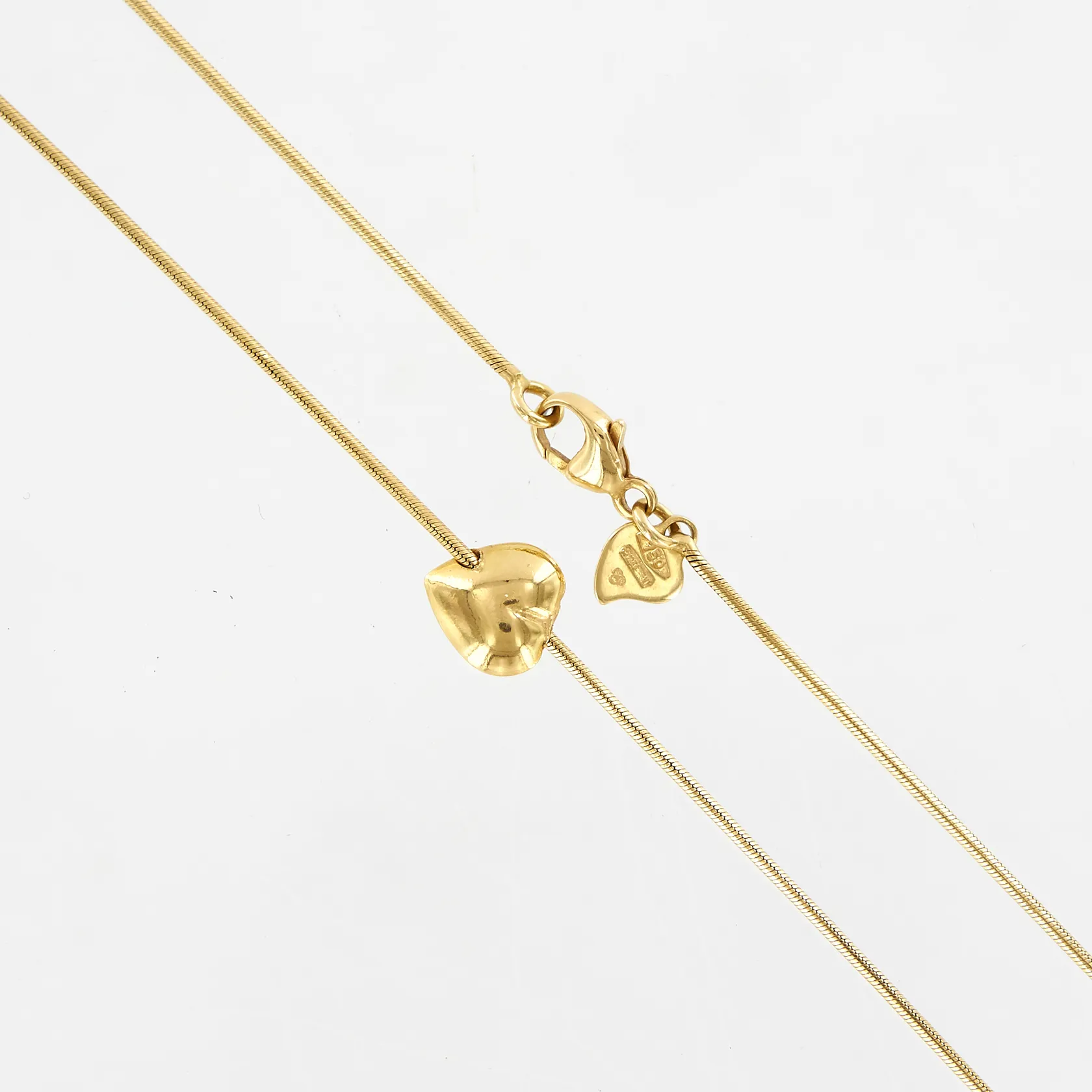 Kedja ormlänk med hänge, hjärta 8x8mm, kedjans längd: 42,5cm, bredd: 1mm, 18K Vikt: 5,3 g.