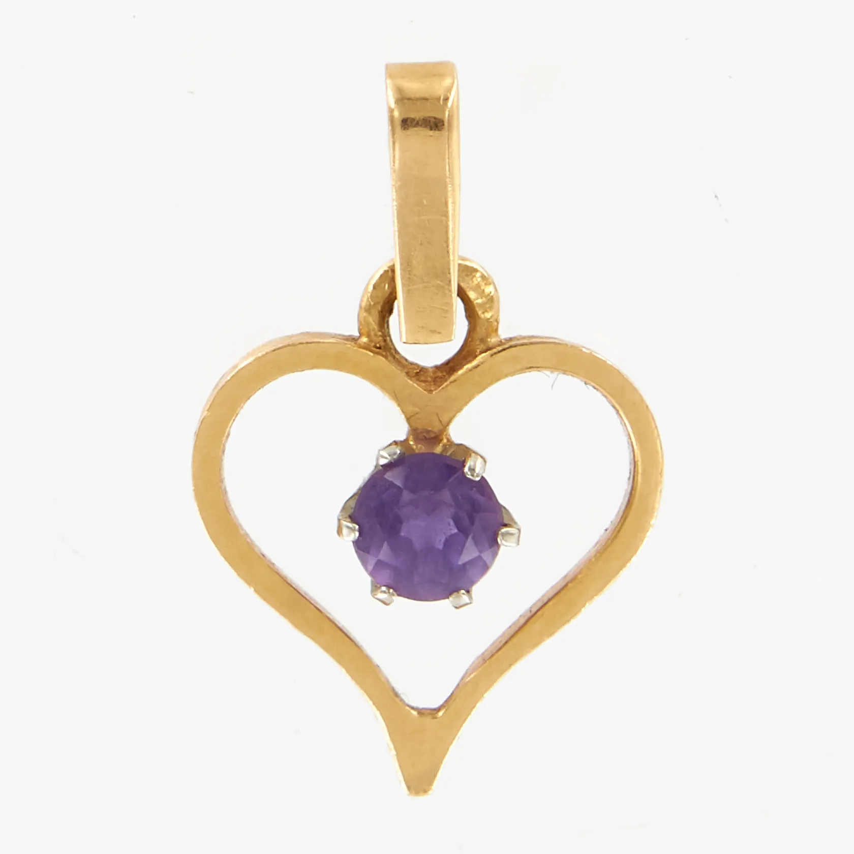 Hänge med lila sten, hjärta, 15x25mm, 18K Vikt: 1,4 g.