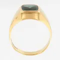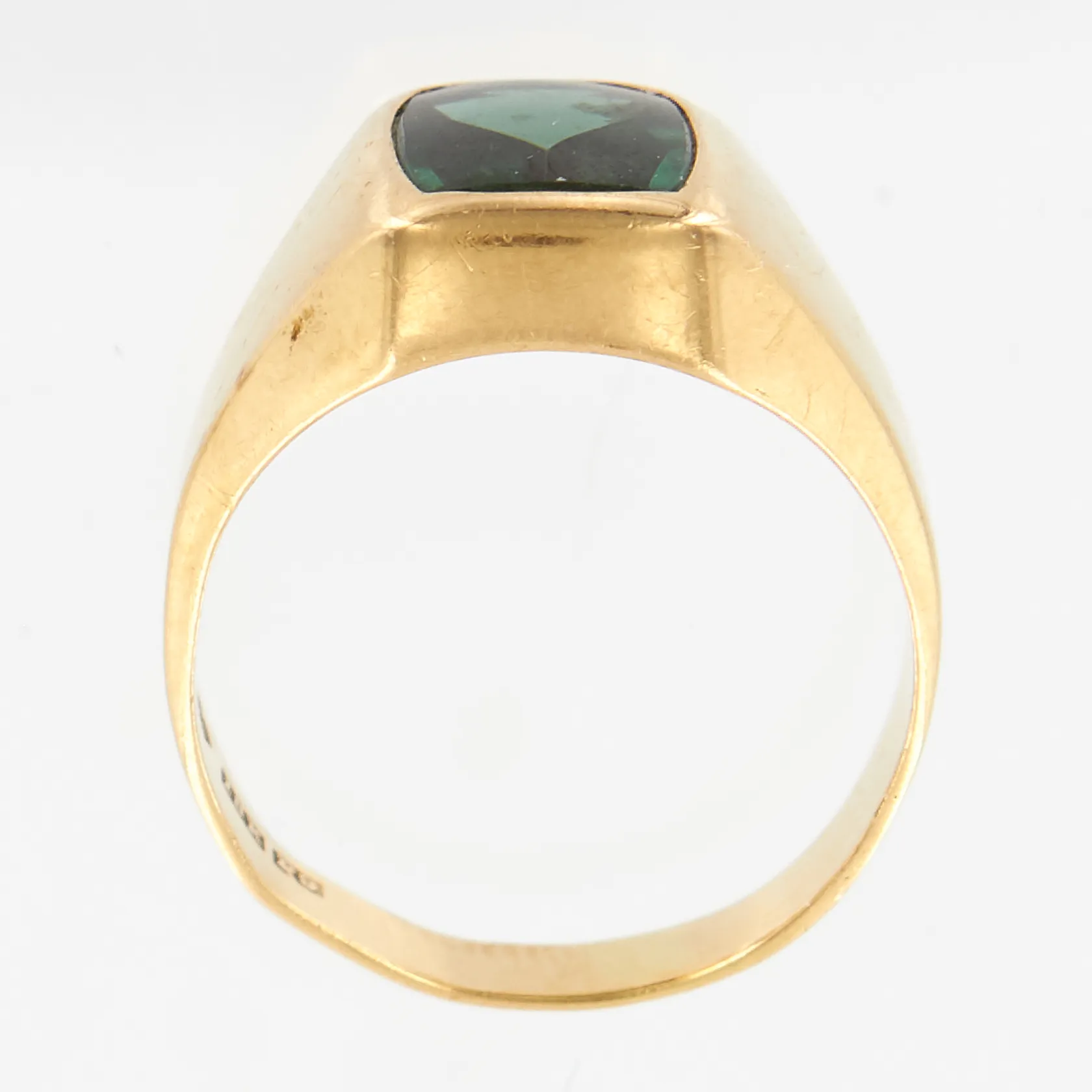 Klackring med grön sten, stl 17¾, bredd 4-12mm, Hedbergs Guld i Dalsjöfors år 1965, skev, 18K Vikt: 4,4 g.