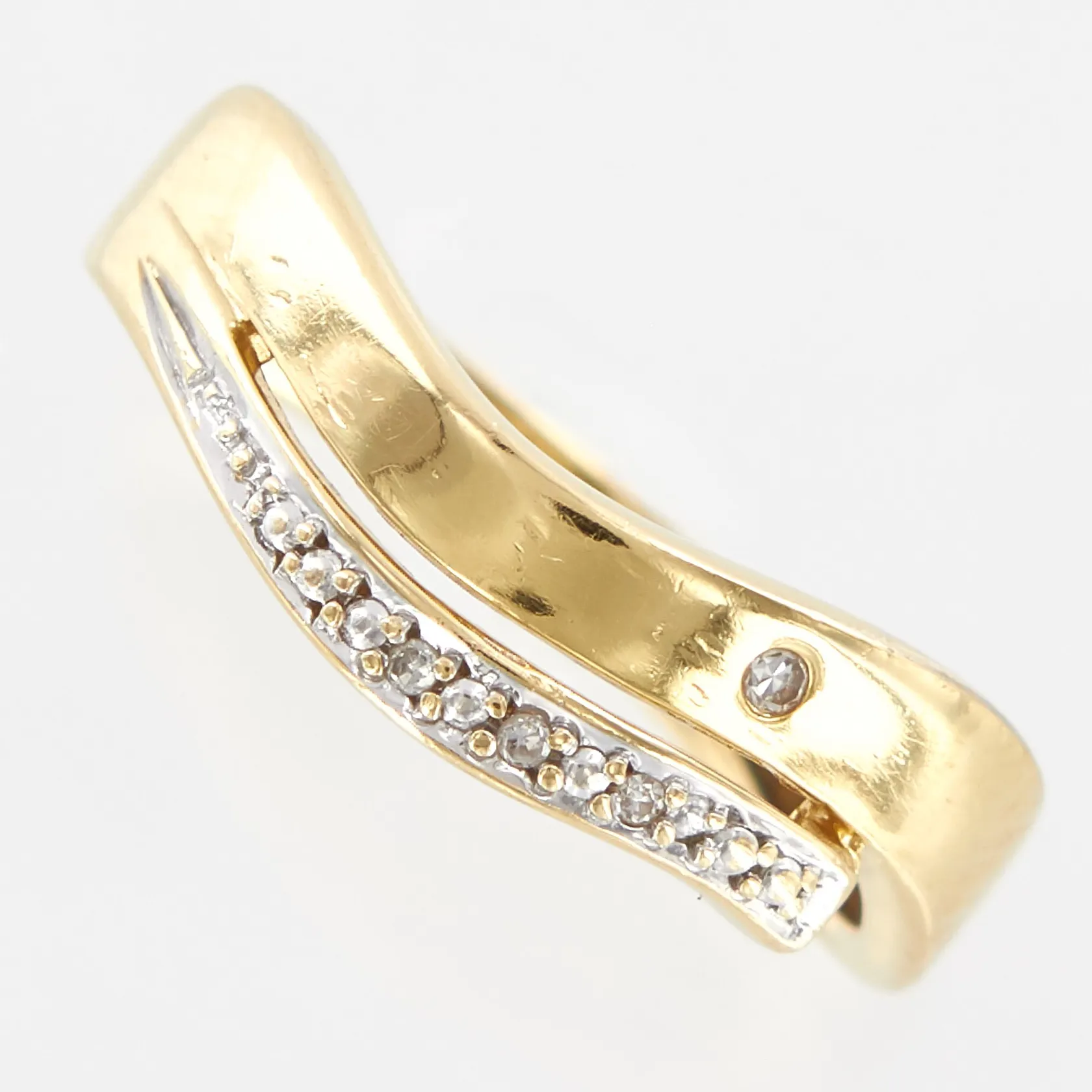 Ring med 4 diamanter 0,025ctv enligt gravyr, stl 17½, bredd ca 6mm, 18K Vikt: 4 g.
