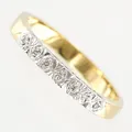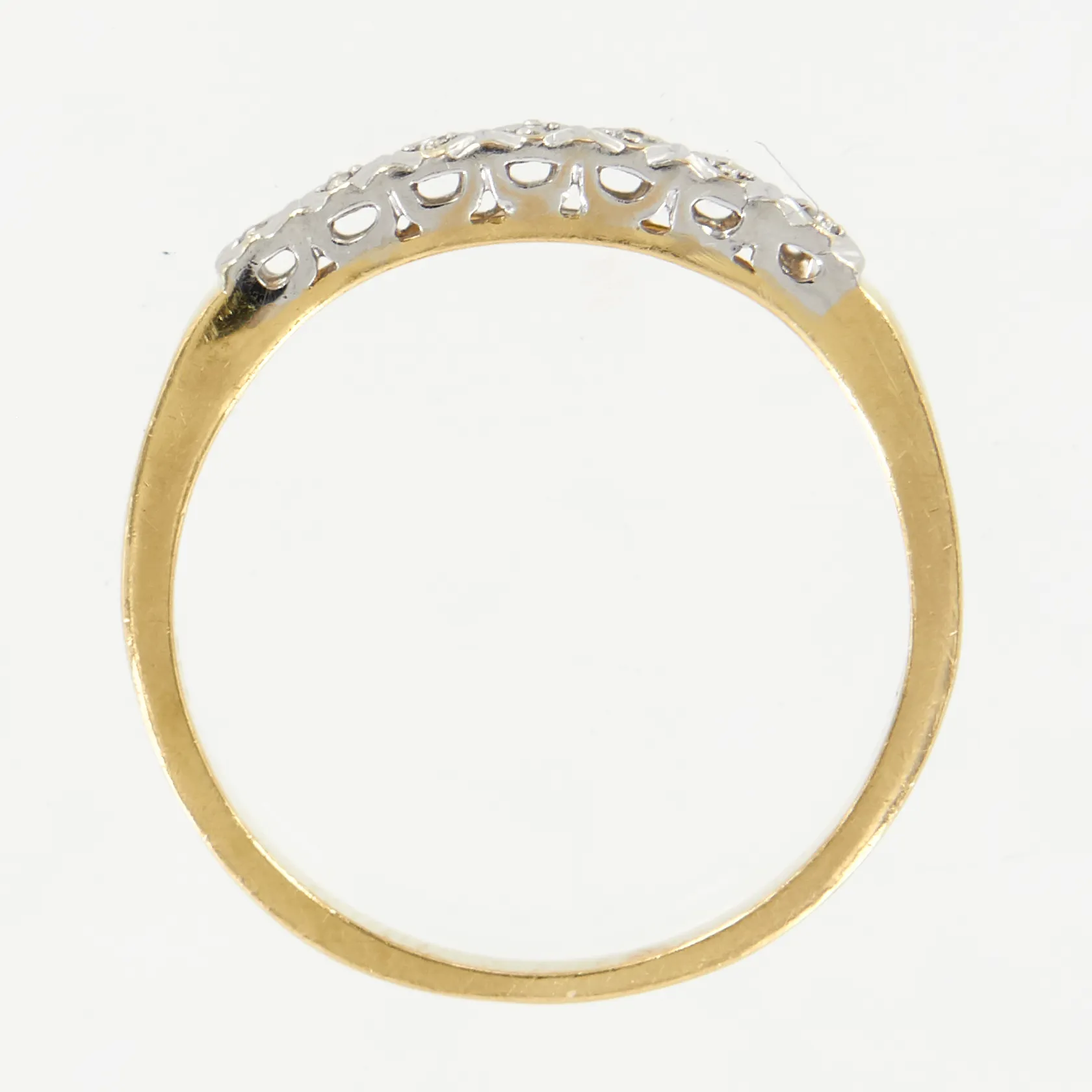 Ring med sju diamanter ca 0,07ctv, stl 19¾, bredd 3mm, gul/vitguld, 18K Vikt: 3,9 g.