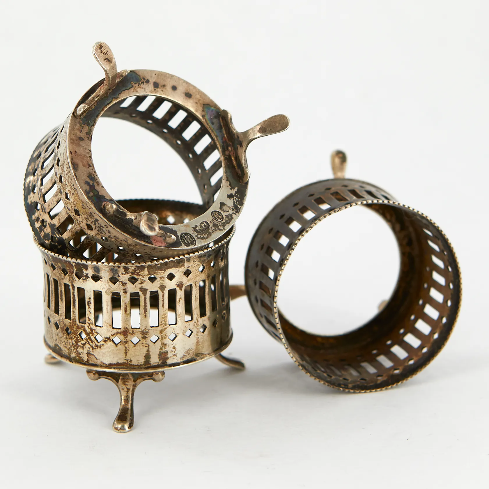 Tre kryddburkshållare, Christian F. Heise, år 1907, Danmark,höjd ca 3cm, Ø 36mm, lite spricka på en hållare, 830/1000 Silver Vikt: 47,7 g.