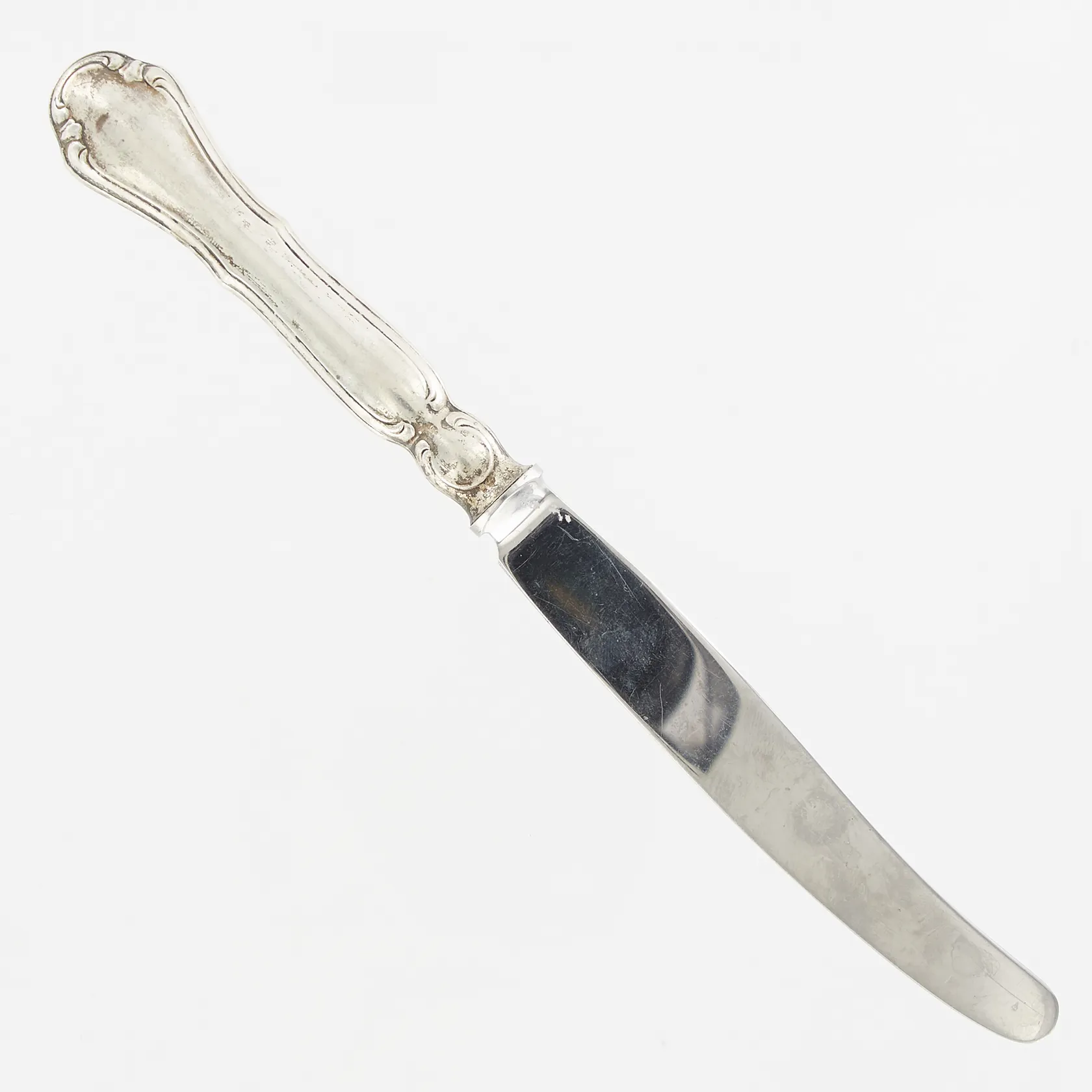Matkniv, med blad i stål, fyllt skaft, vapengravyr, 830/1000 Silver Vikt: 47,5 g.