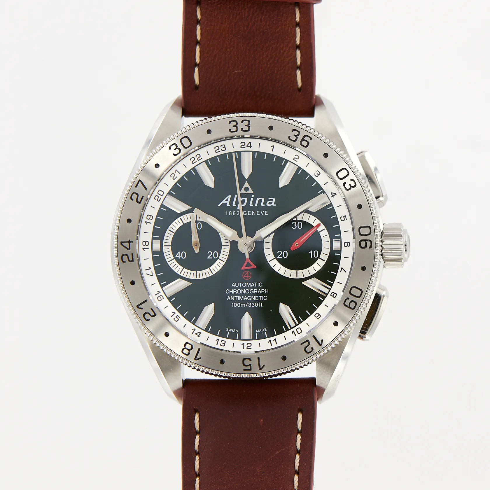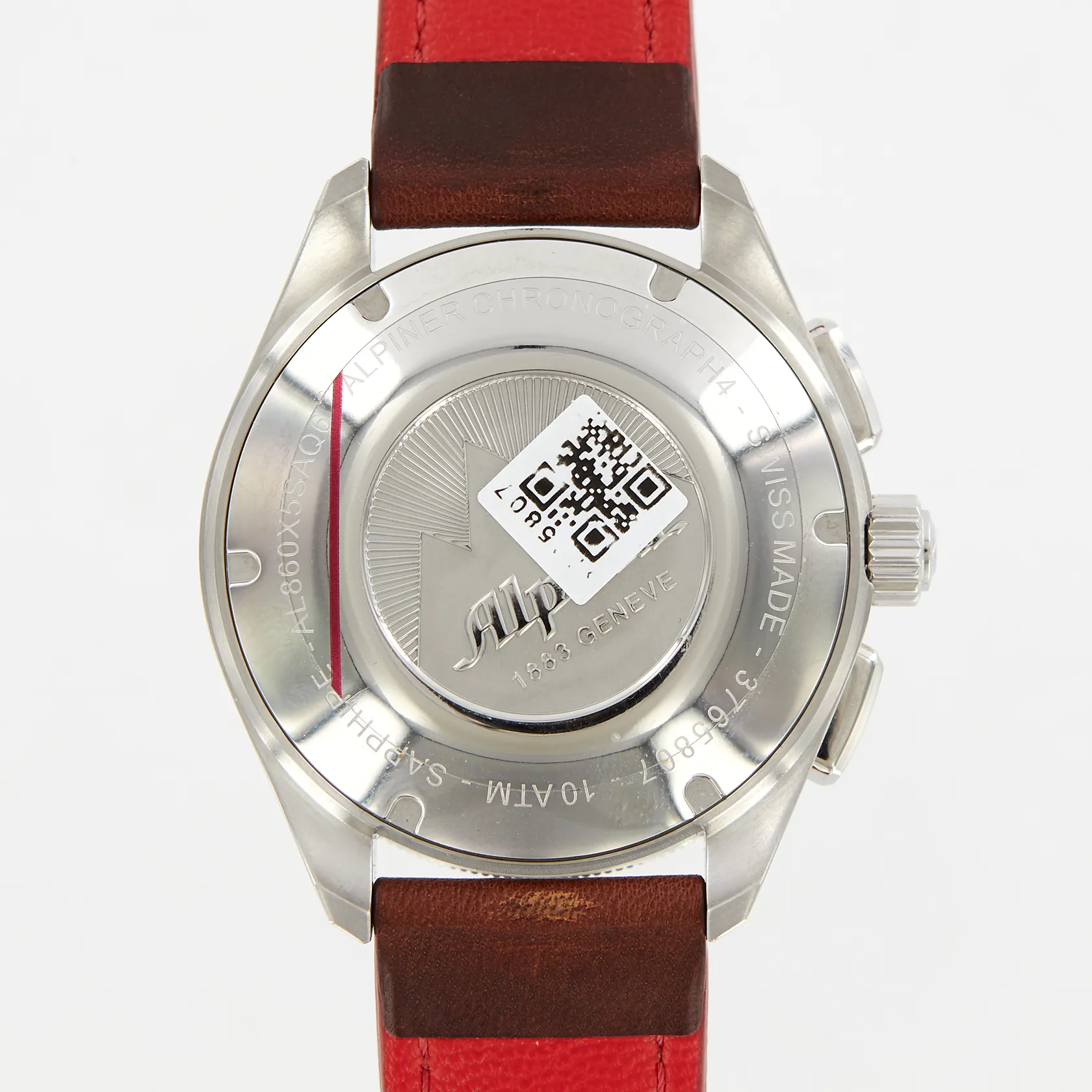 Herrur Alpina, Alpiner Chronograph 4, automatisk, stål, Ø44mm, ref: AL860X5SAQ6, serienr:3765807m med läderarmband, originalbox, fint skick
