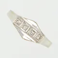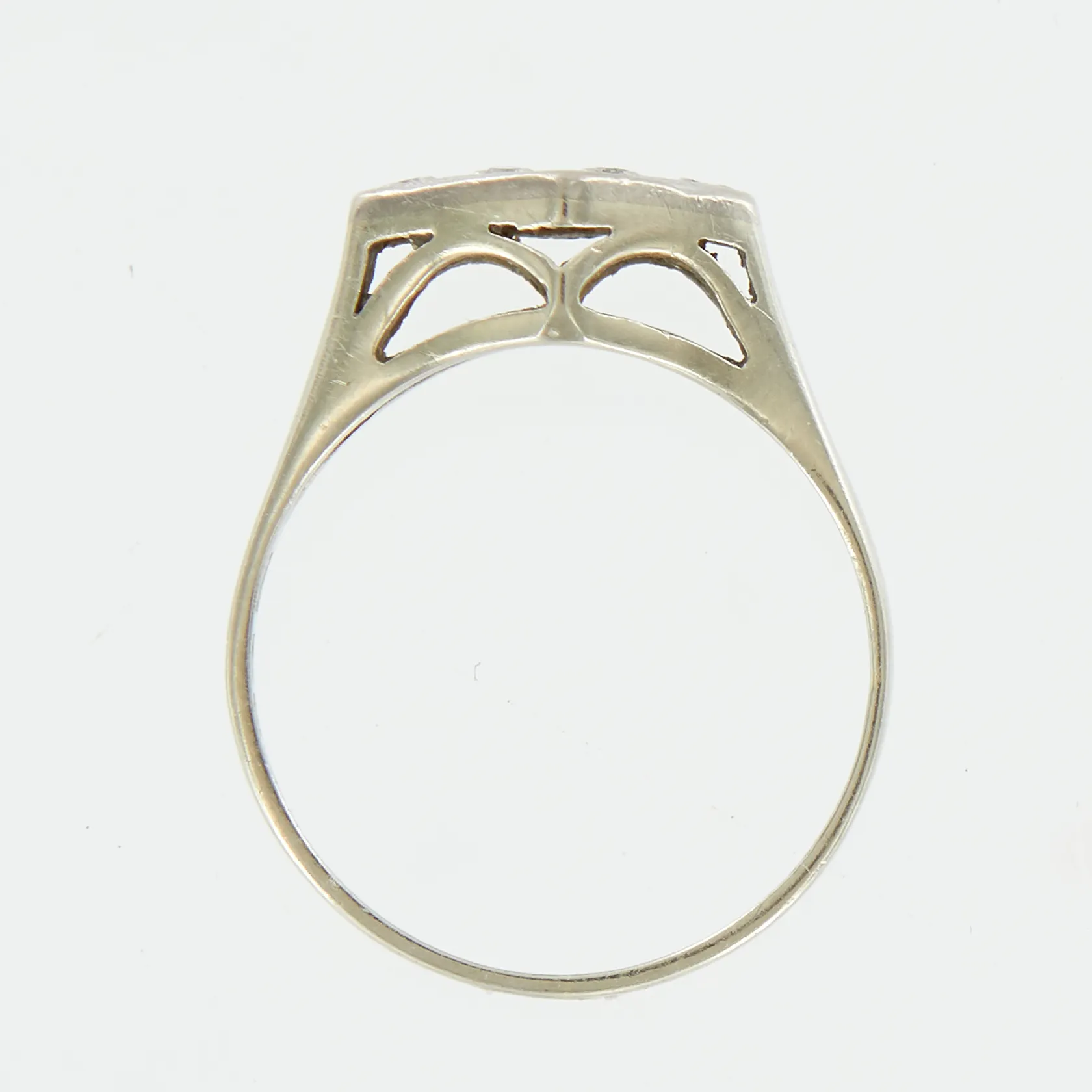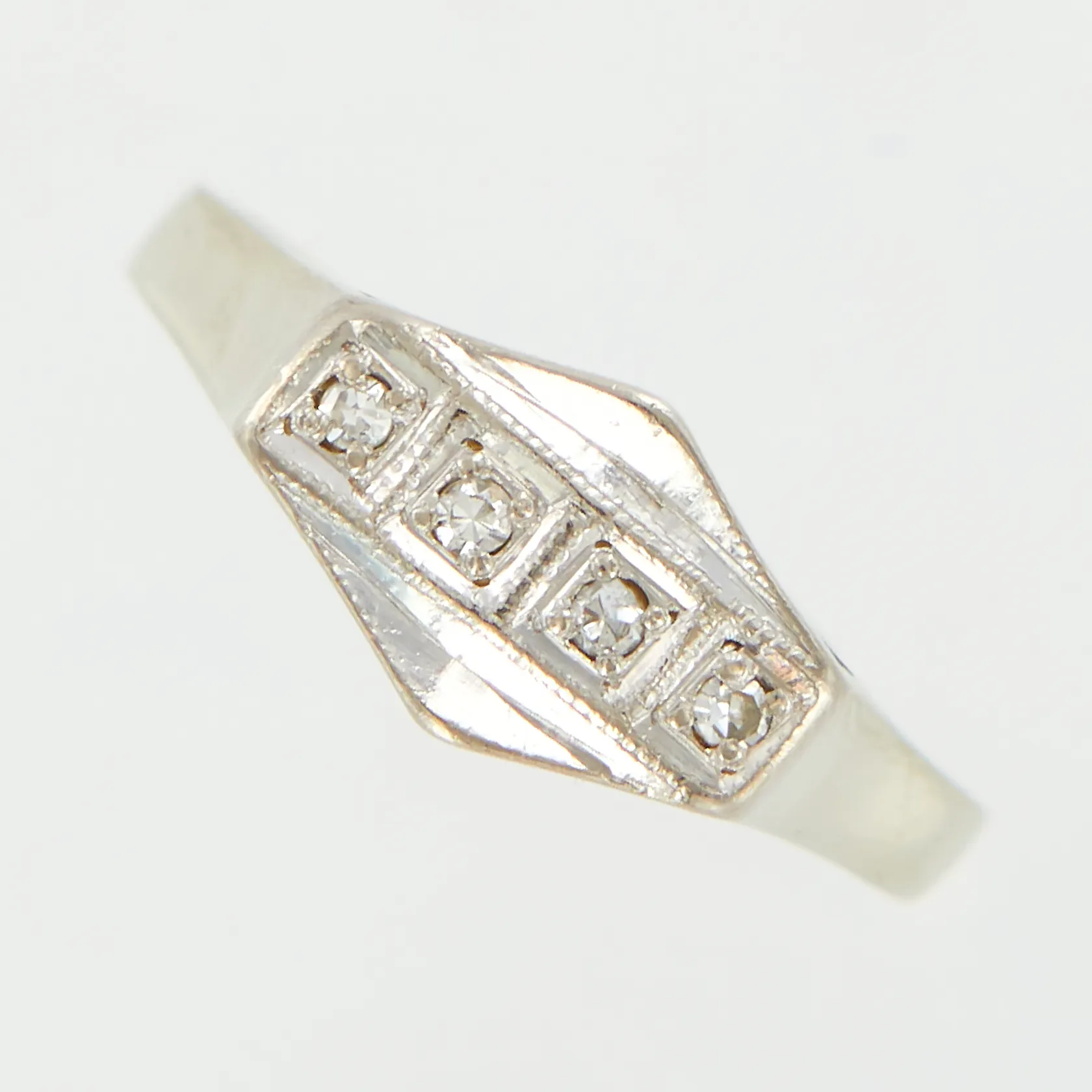 Ring vitguld med 8/8 slipade diamanter 4x0,01ct, stl 17, bredd framtill ca 7mm, behov av omrodinering, 18K Vikt: 3 g.