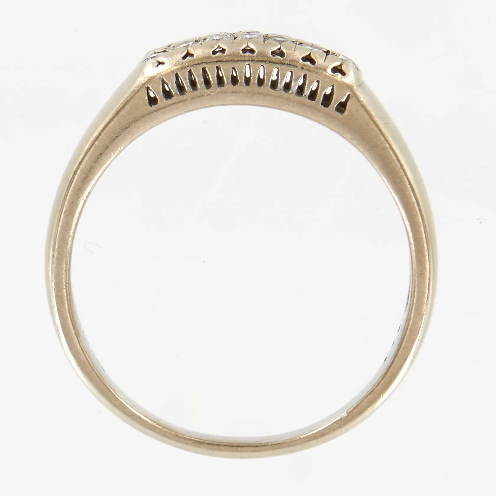 Ring med diamanter 14x0,02ct, stl 19¼, bredd framtill ca 6mm, 2 diamanter med nagg, 18K Vikt: 4,6 g.