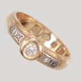 Ring stl 16¼, bredd 3,9-5,9mm, diamant 1x ca 0,10ct, åttkantslipade 4x ca 0,01ct, gravyr, 18K Vikt: 4,5 g.