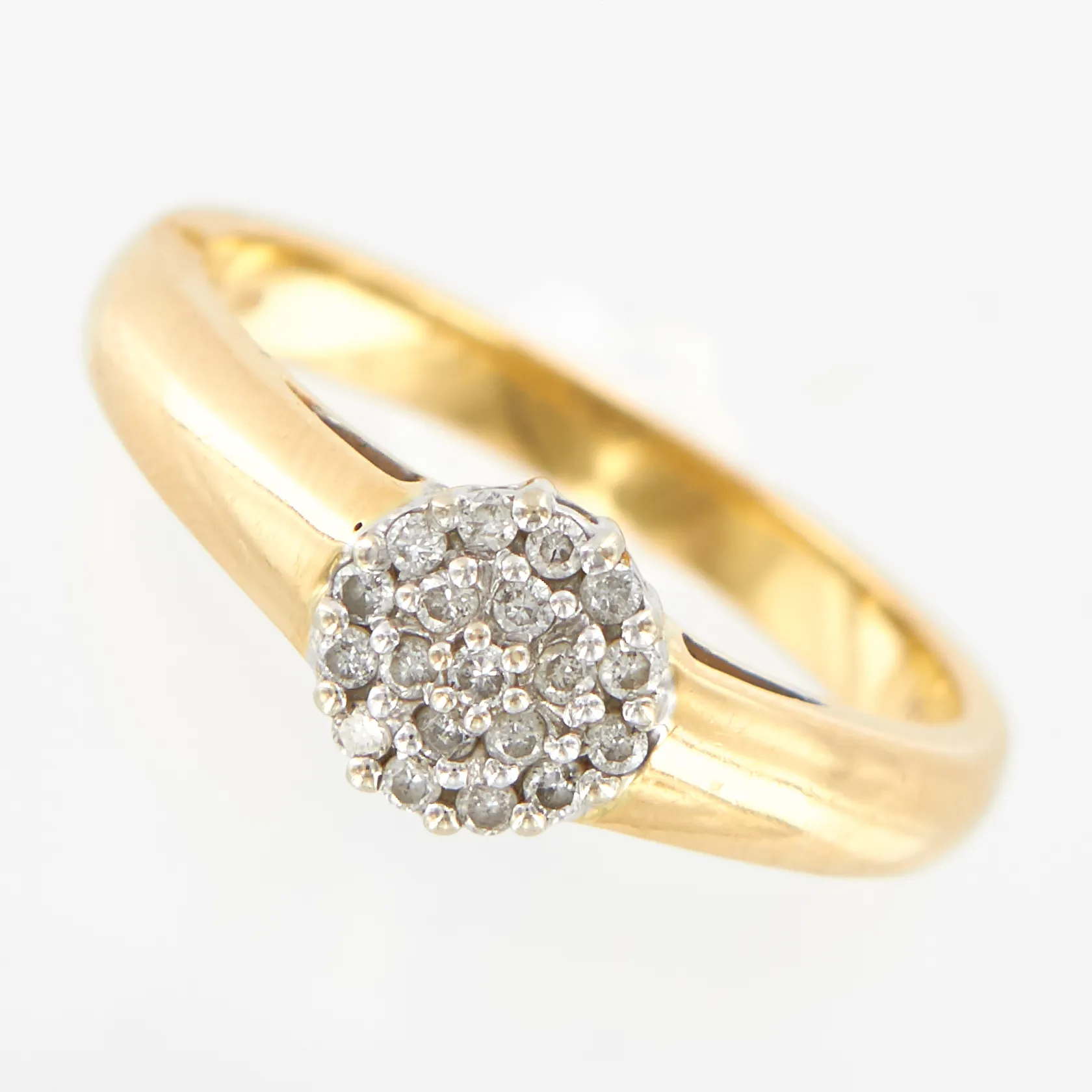 Ring med 19 diamanter 0,20ctv, stl 18¾, bredd: 3-7mm, 18K Vikt: 4,3 g.
