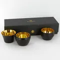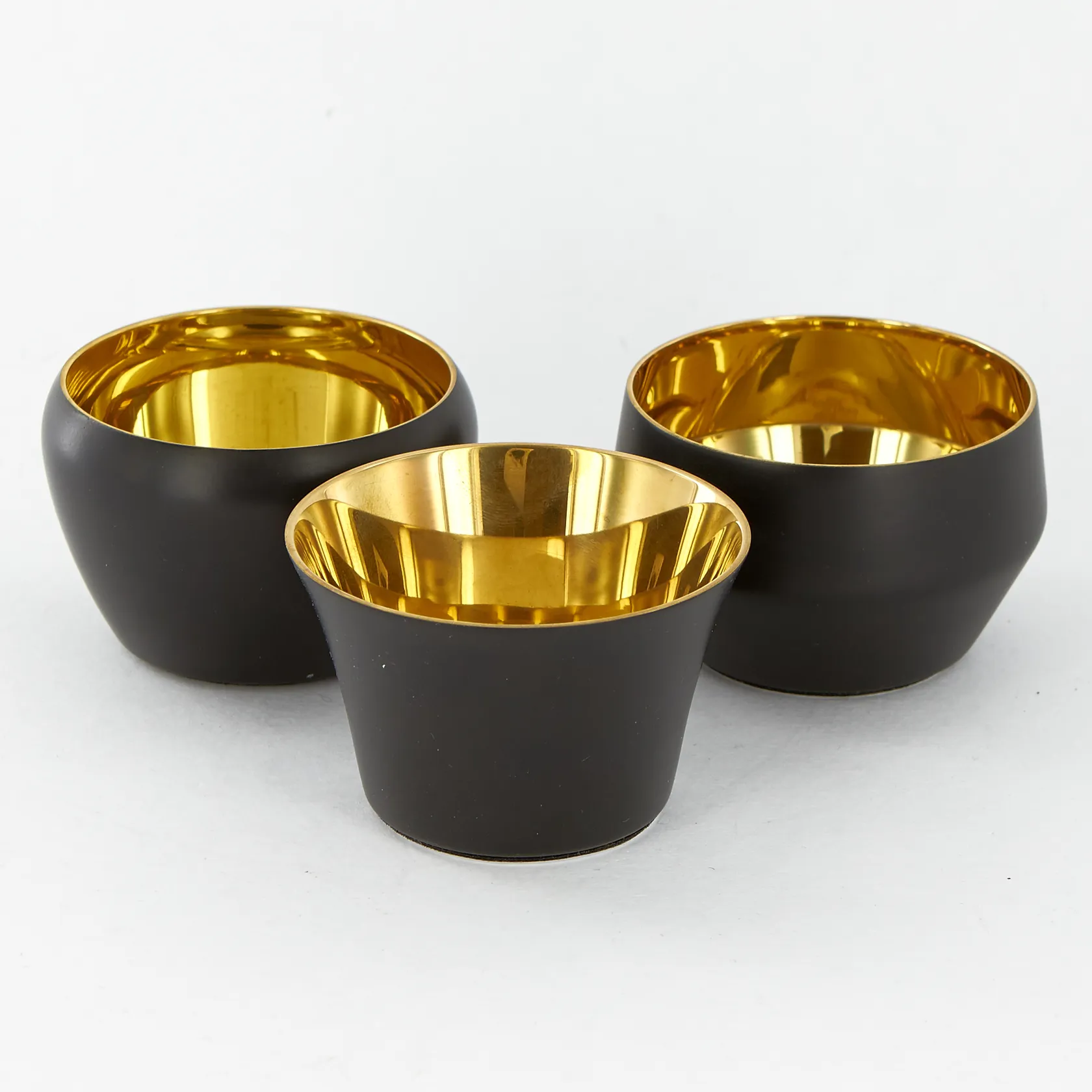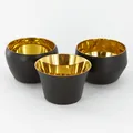 Tre Värmeljushållare, Skultuna, Kin Votives, höjd ca 4cm, mässing och svart, originalask