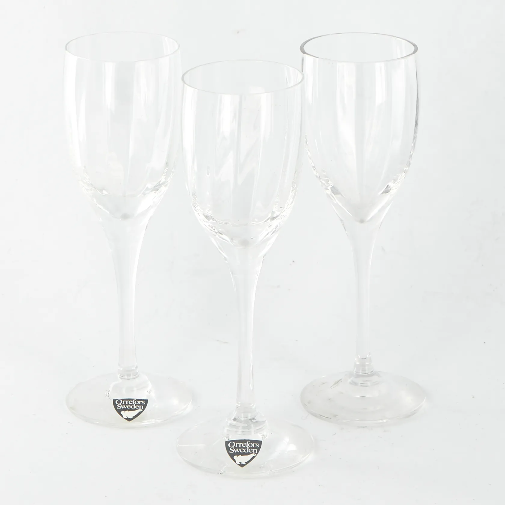 Tre Cognac-/ Konjakglas ur serien Optica, Gunnar Cyrén för Orrefors, höjd: 13cm,