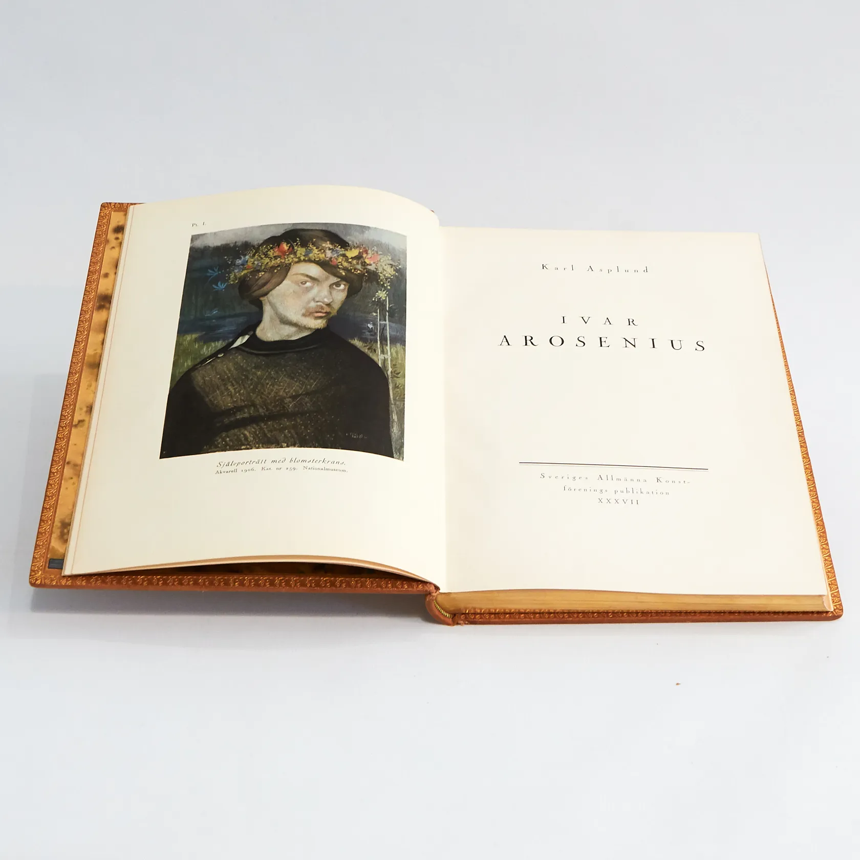 Bok, Ivar Arosenius av Karl Asplund, Sveriges Allmänna Konstförenings Publikation XXXVII, tryckt hos P.A. Norstedt & Söner, 1928, med färgplanscher i offsettryck, guldsnitt