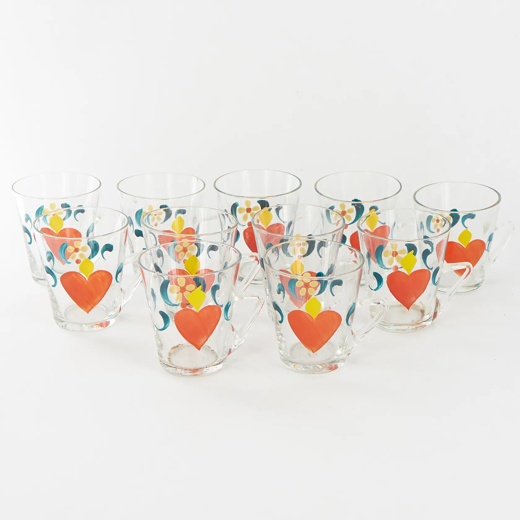 11 glaskoppar/glöggmuggar med hjärtdekor