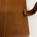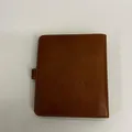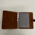 Agenda Mulberry New Oak, brunt läder med mässigsdetaljer, mått ca 16,5x14x2,5cm, fuktskada, kvittokopia NK Mulberry daterat 14-12-19, inga övriga tillbehör